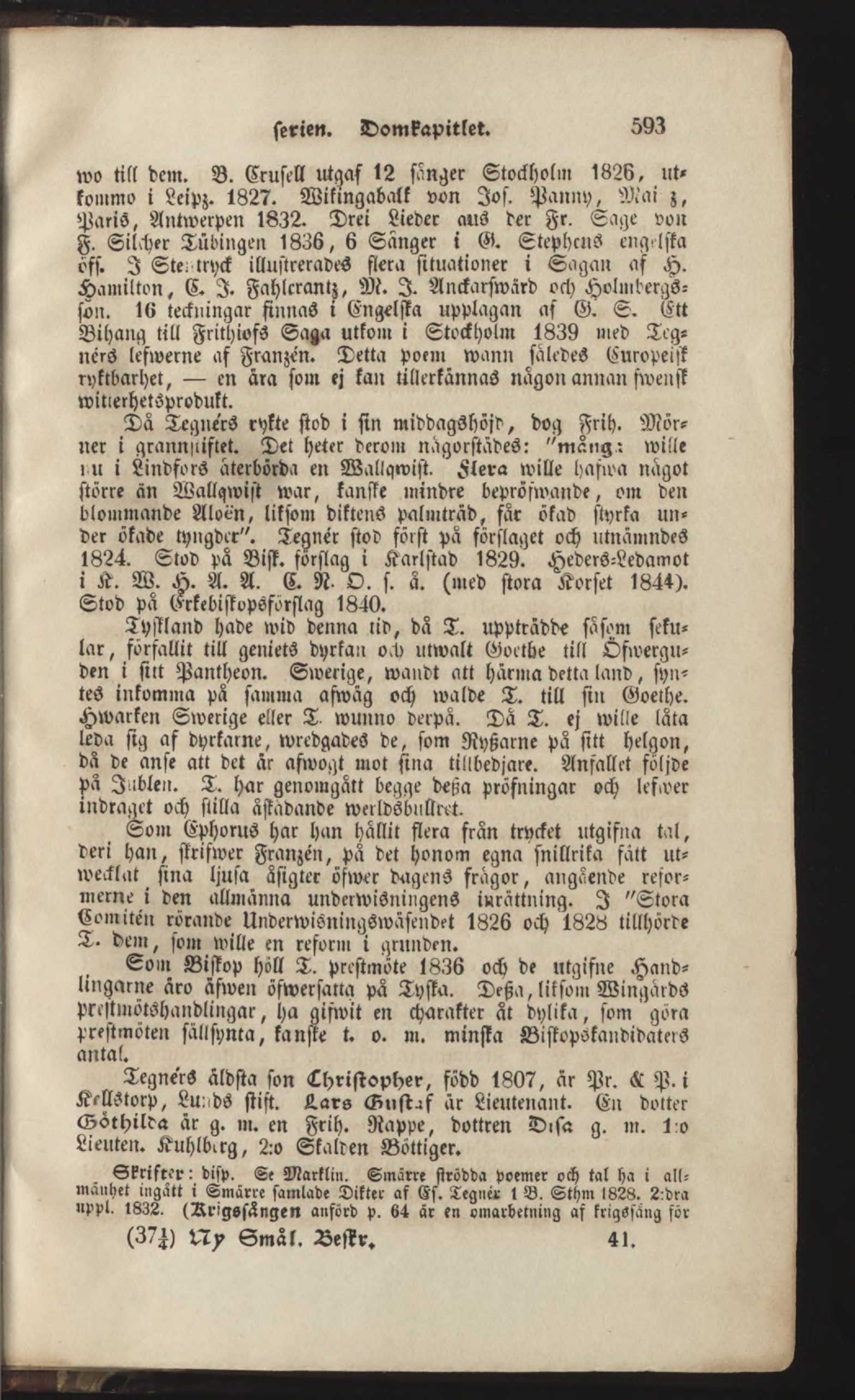 Bihang till Frithiofs Saga utkom i Stockholm 1839 med Teg-