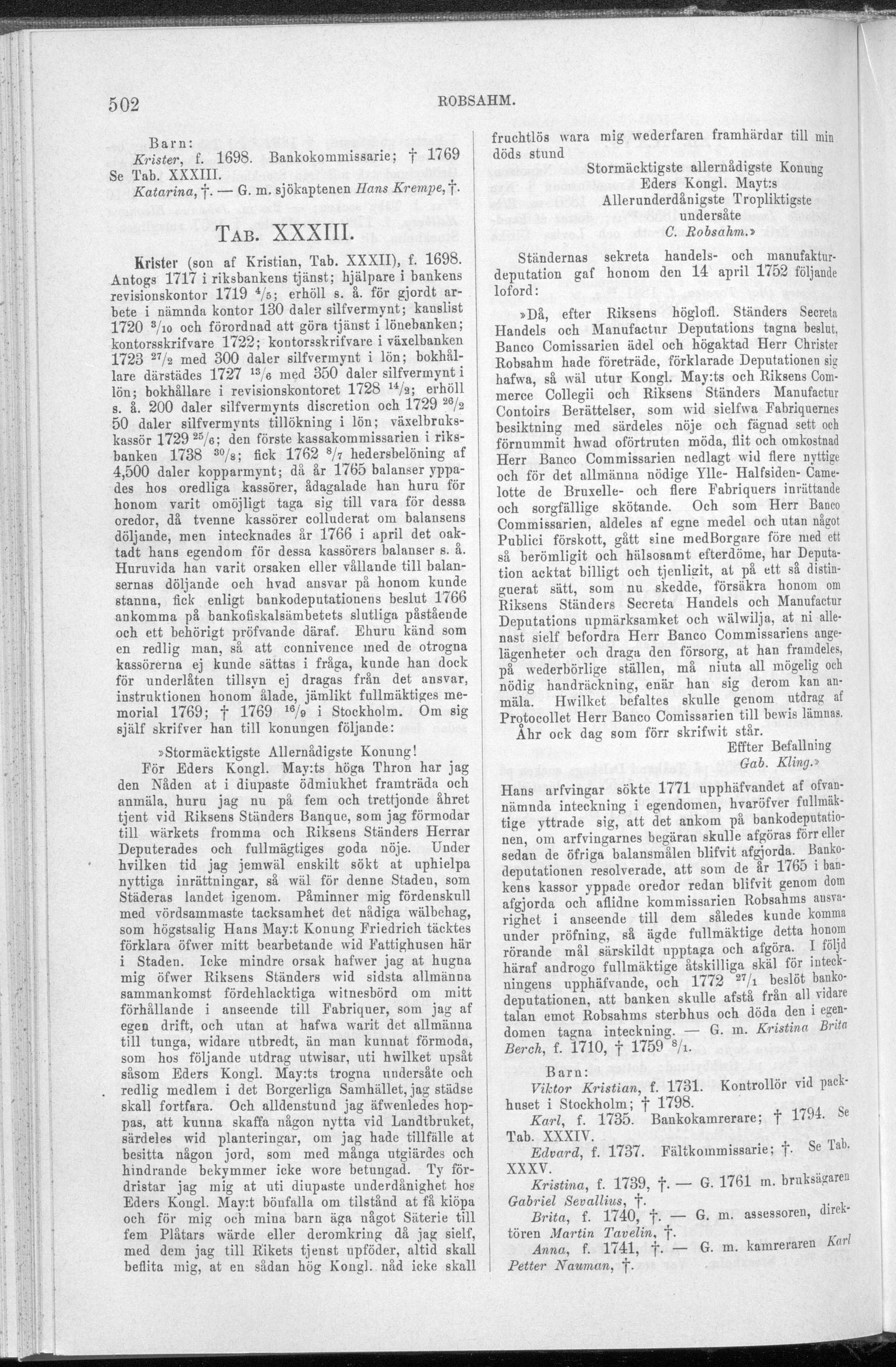 riksbanken 1738 30/8; fick 1762 8/7 hedersbelöning af