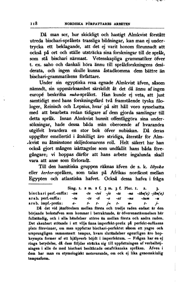 utreda bischari-språkets trassliga bildningar, kan man ej under-