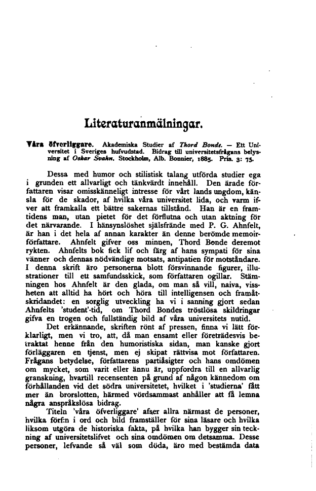 Våra öfverliggare. Akademiska Studier af Thord Bonde. — Ett Uni-