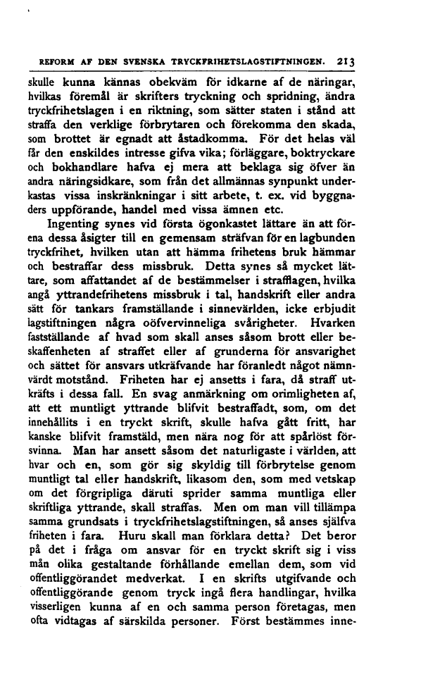 REFORM AF DEN SVENSKA TRYCKFRIHETSLAGSTIFTNINGEN. 213