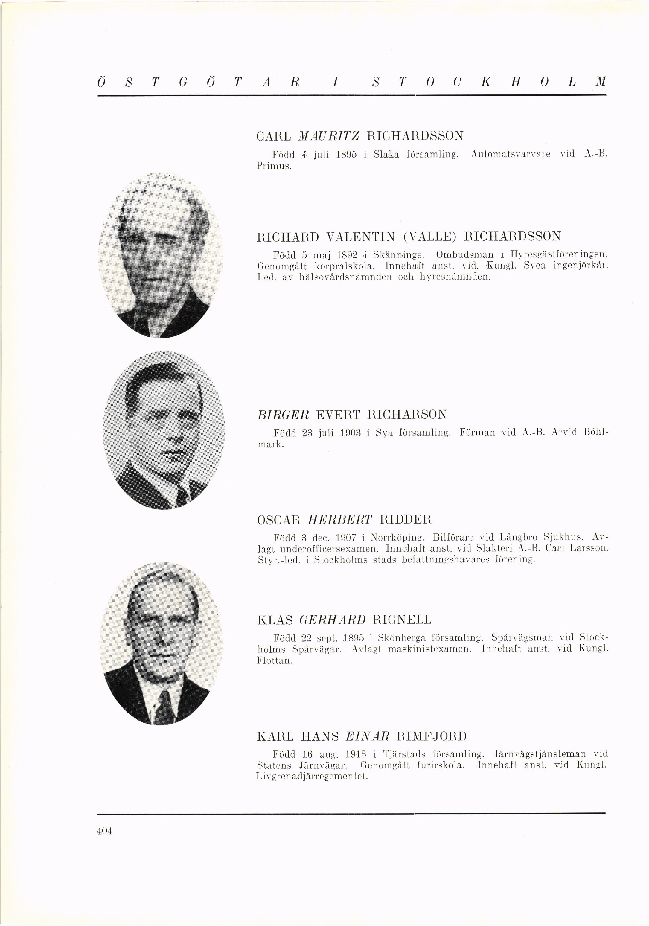 Född 3 dec. 1907 i Norrköping. Bilförare vid Långbro Sjukhus.