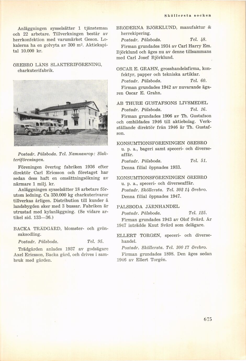 Postadr. Sköllersta. Tel. 30017 Örebro.