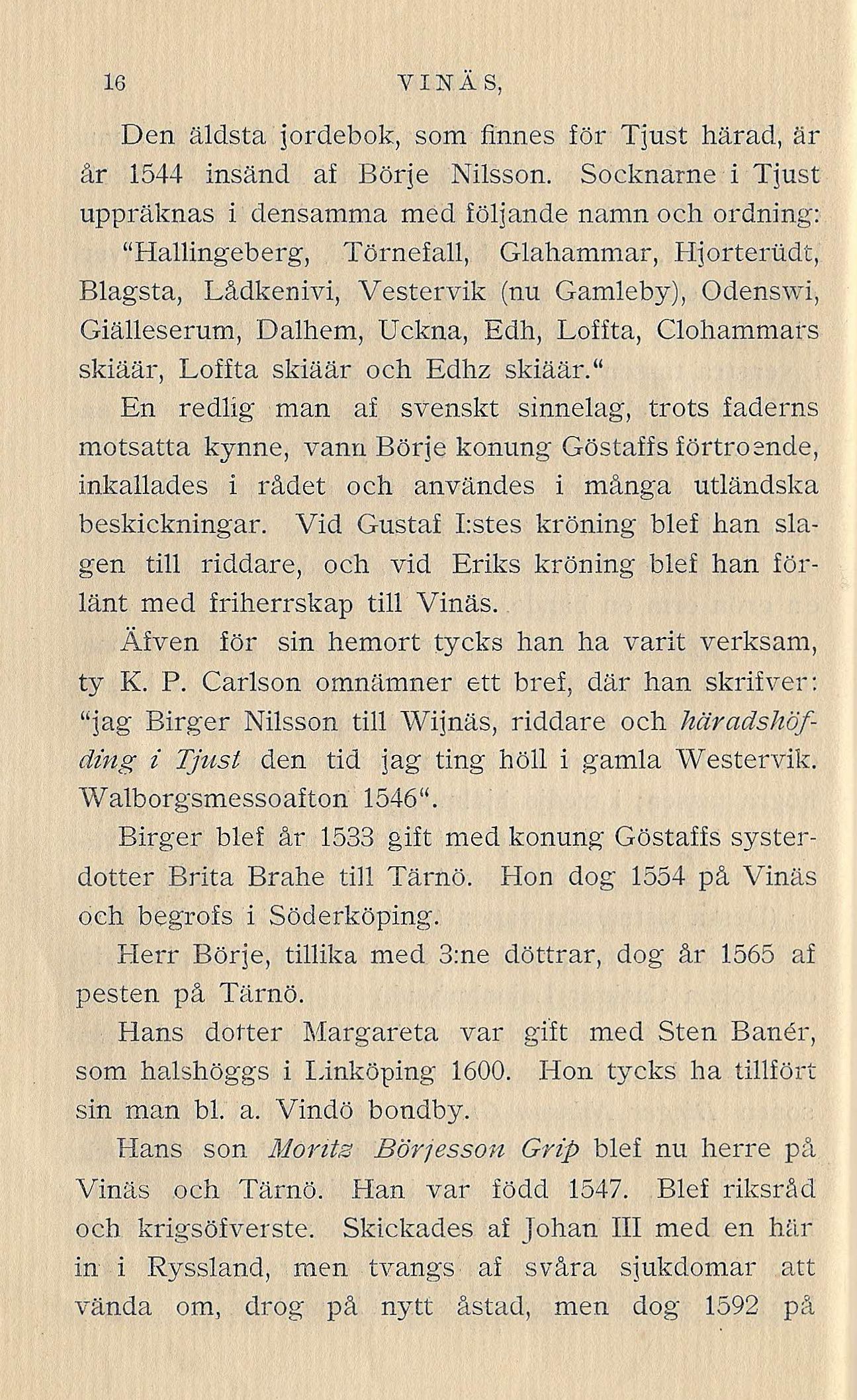 systerdotter Brita Brahe till Tärnö. Hon dog 1554 på Vinäs