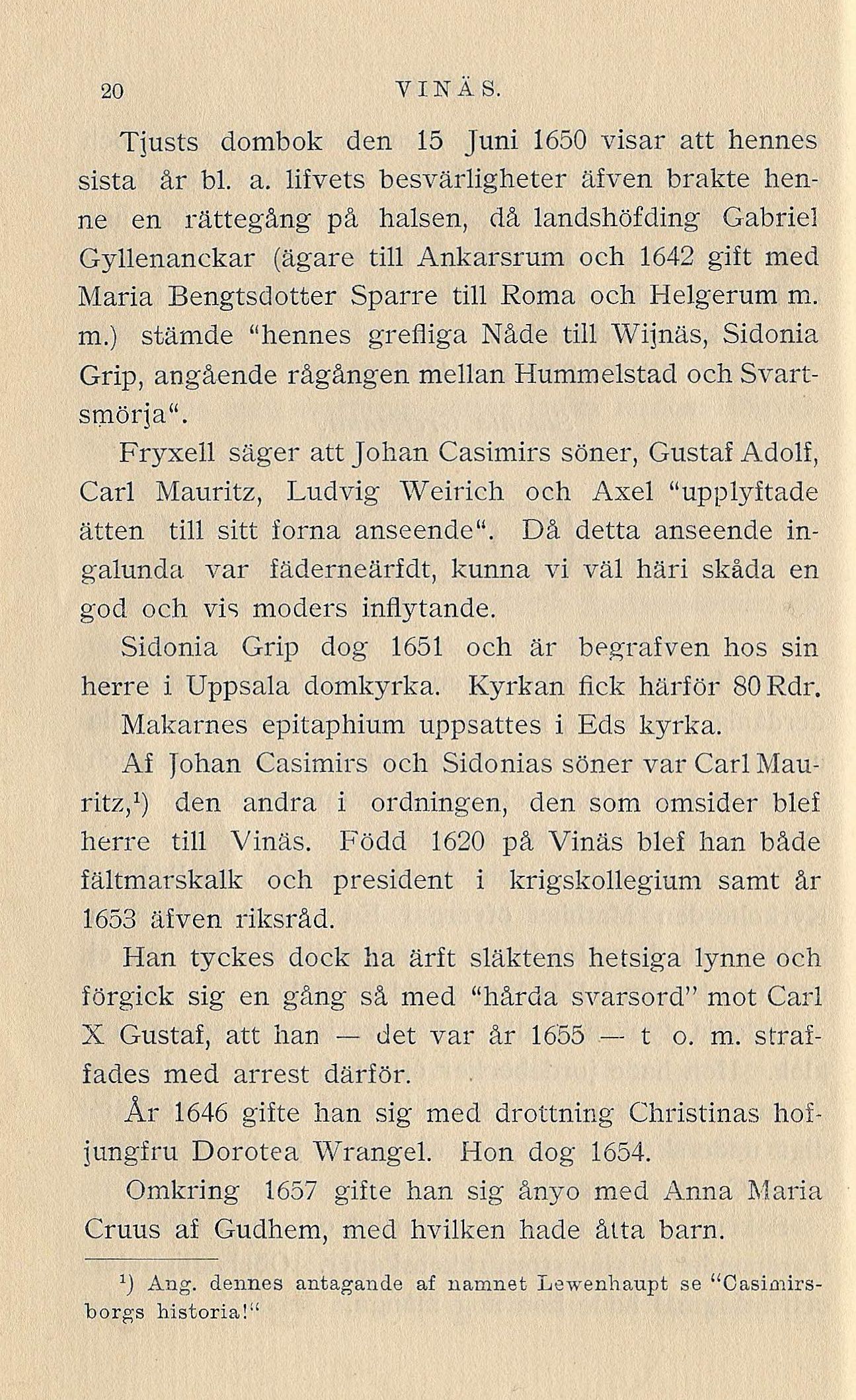 m.) stämde “hennes grefliga Nåde till Wijnäs, Sidonia
