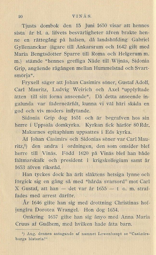 herre till Vinäs. Född 1620 på Vinäs blef han både