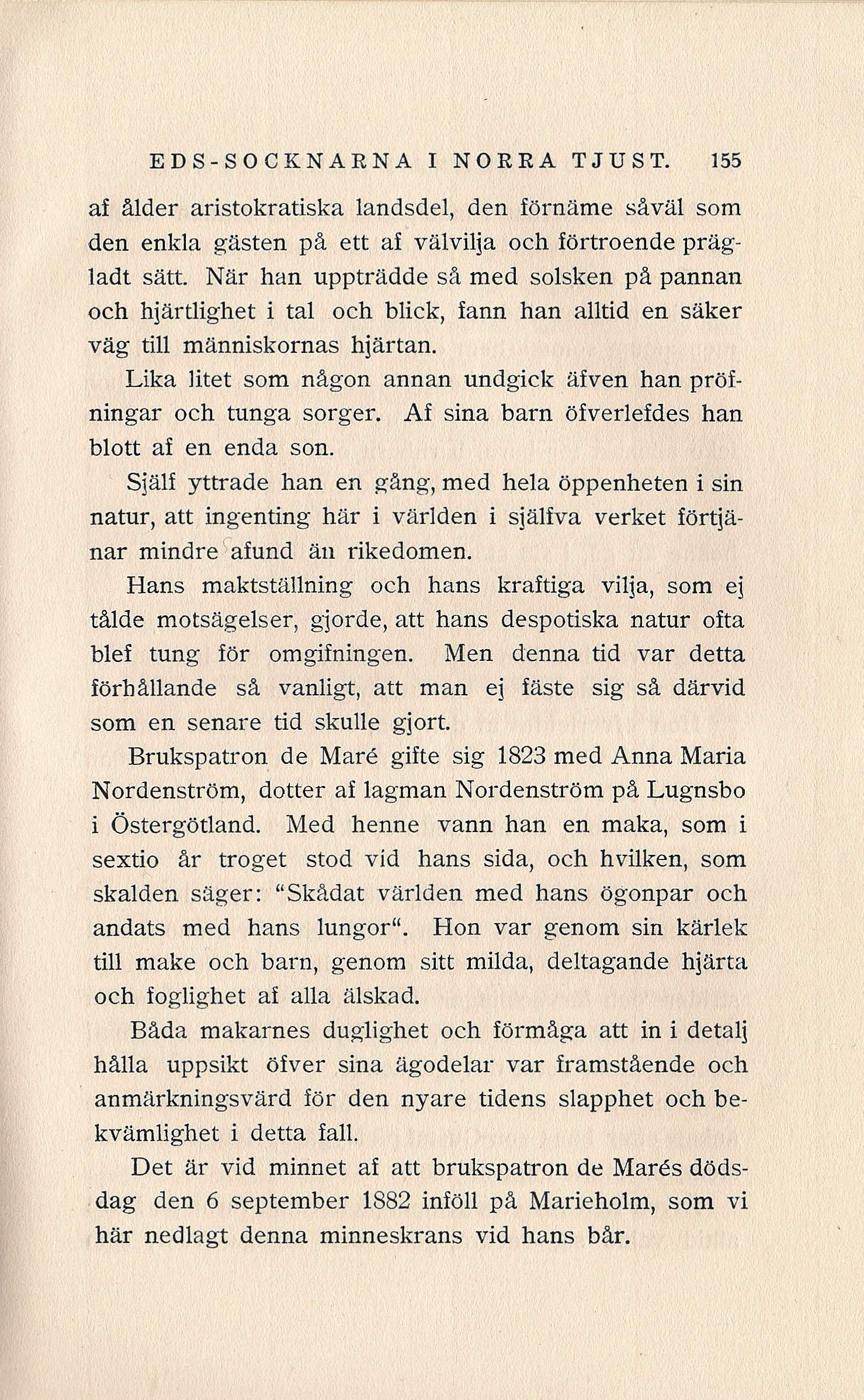 Brukspatron de Maré gifte sig 1823 med Anna Maria