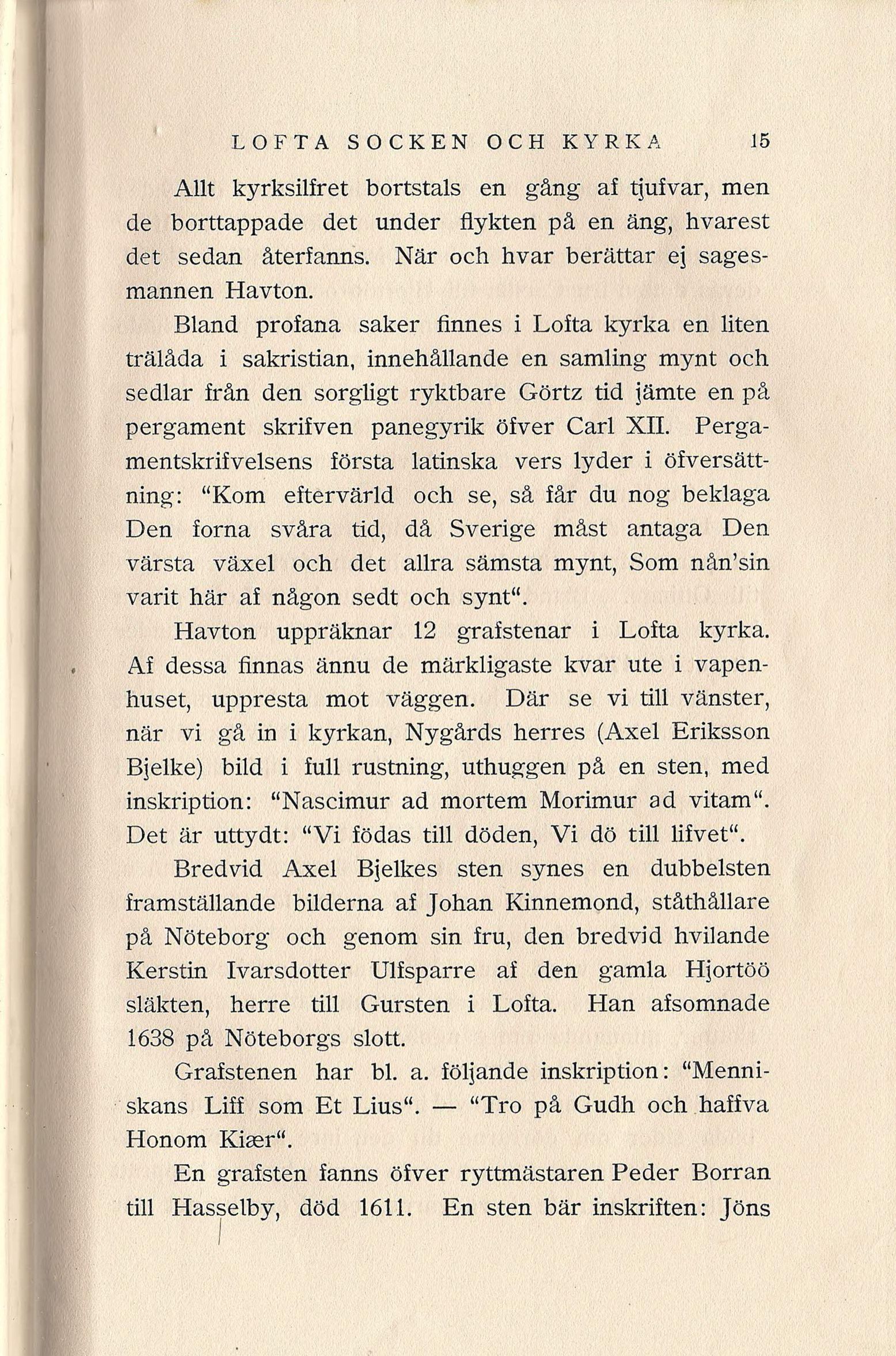 Havton uppräknar 12 grafstenar i Lofta kyrka.