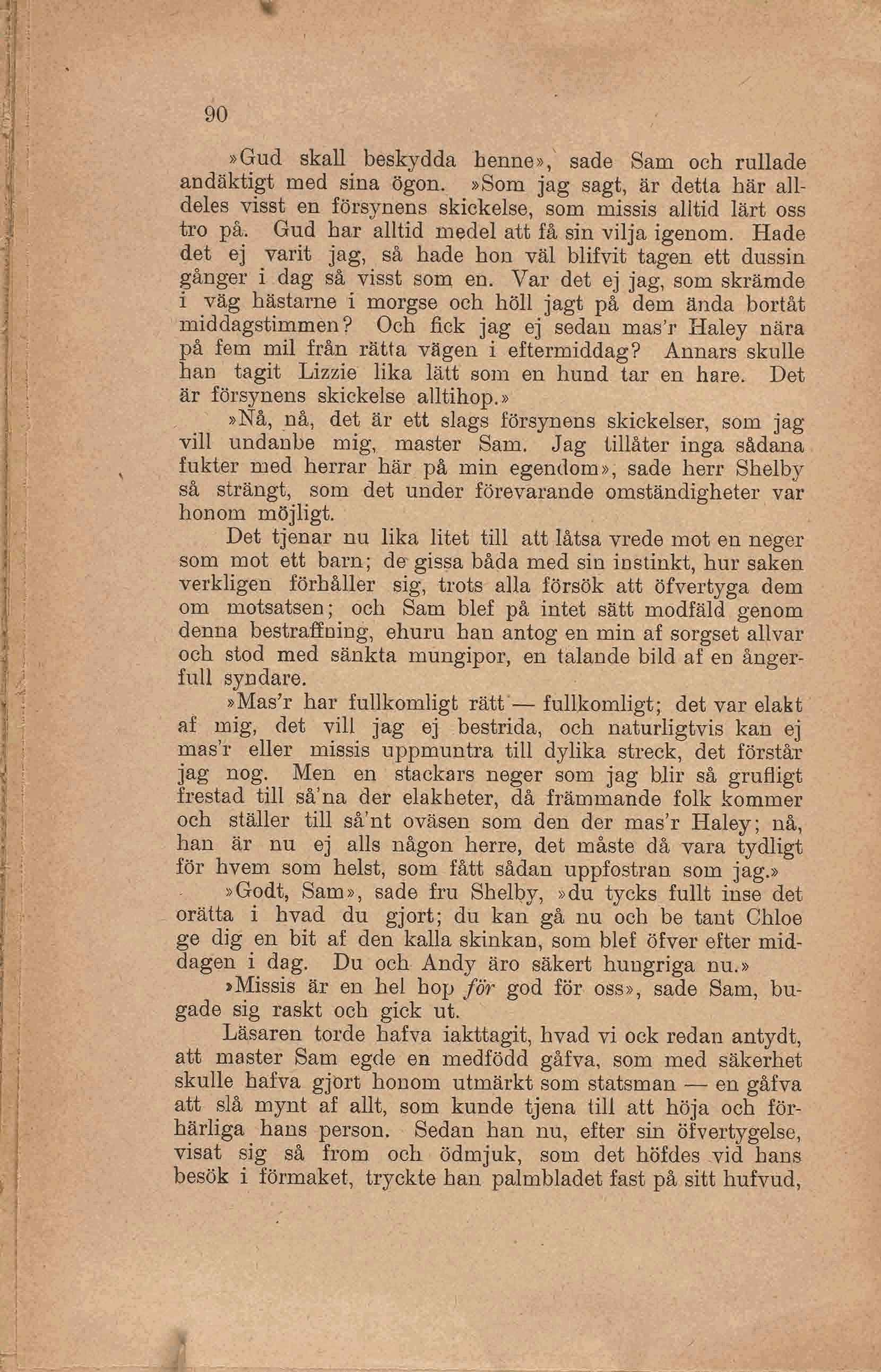 »Godt, Sam», sade fru Shelby, »du tycks fullt inse det