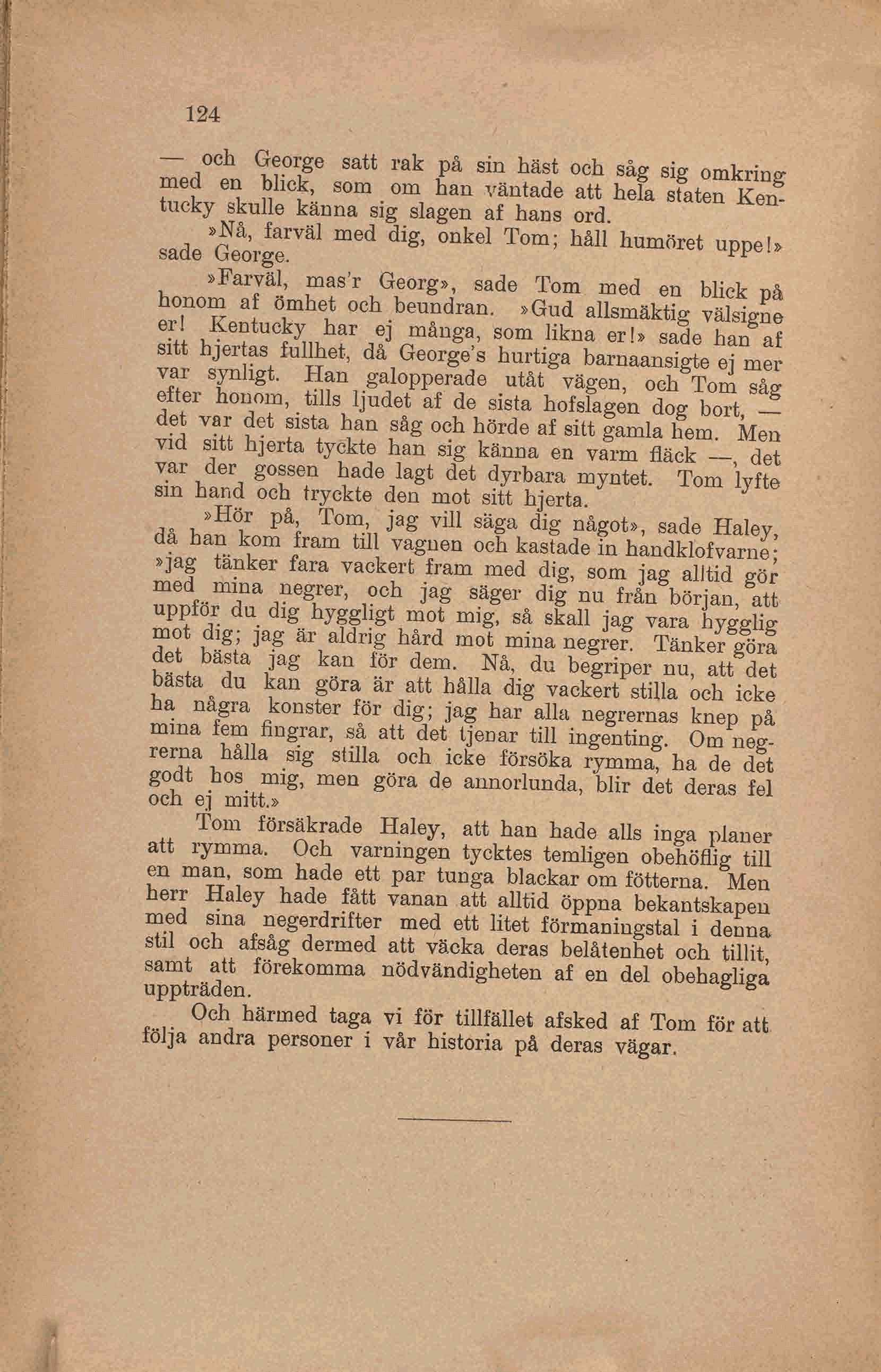 »Farväl, mas’r Georg», sade Tom med en blick på