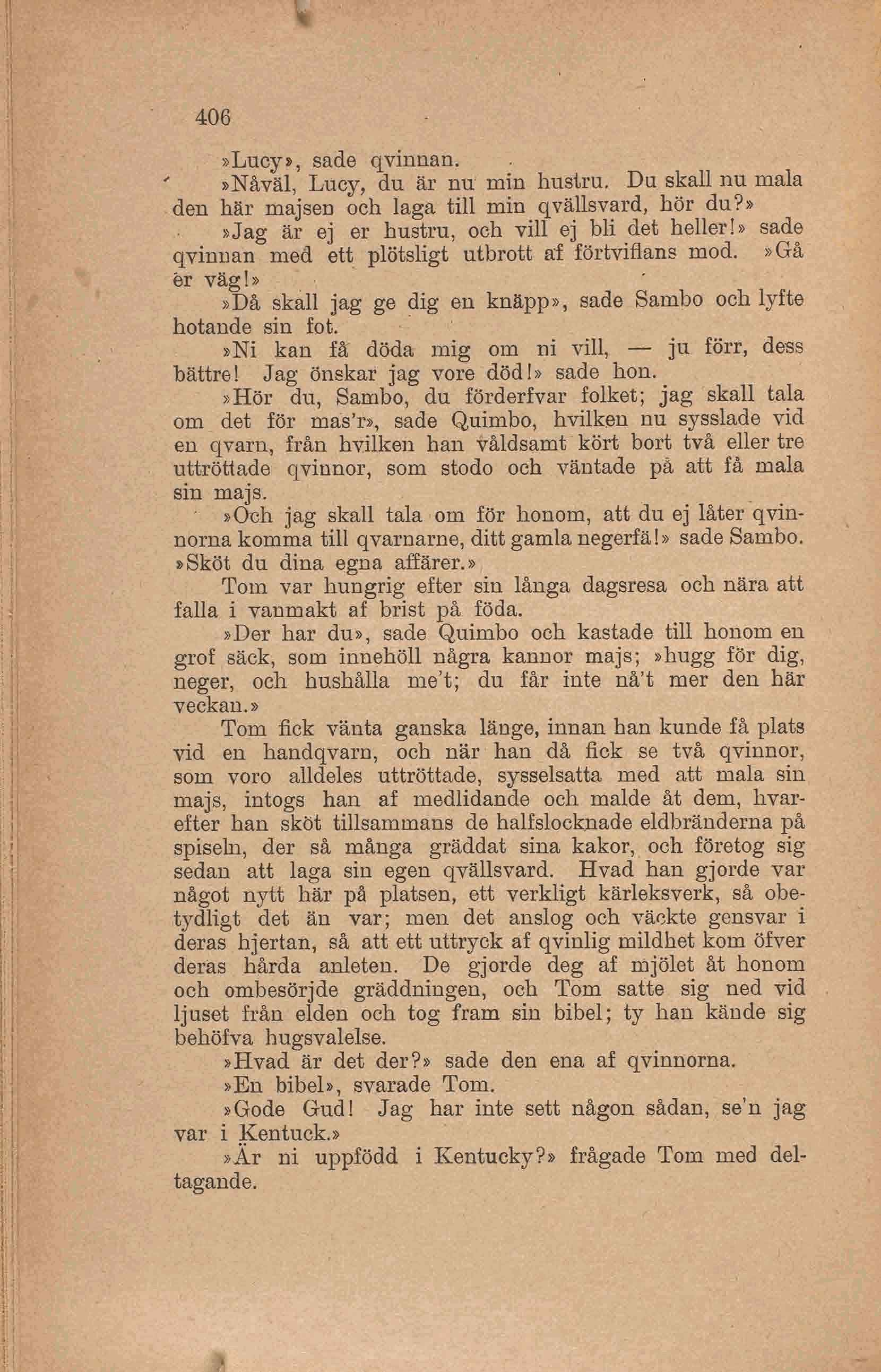 qvinnorna komma till qvarnarne, ditt gamla negerfä!» sade Sambo.