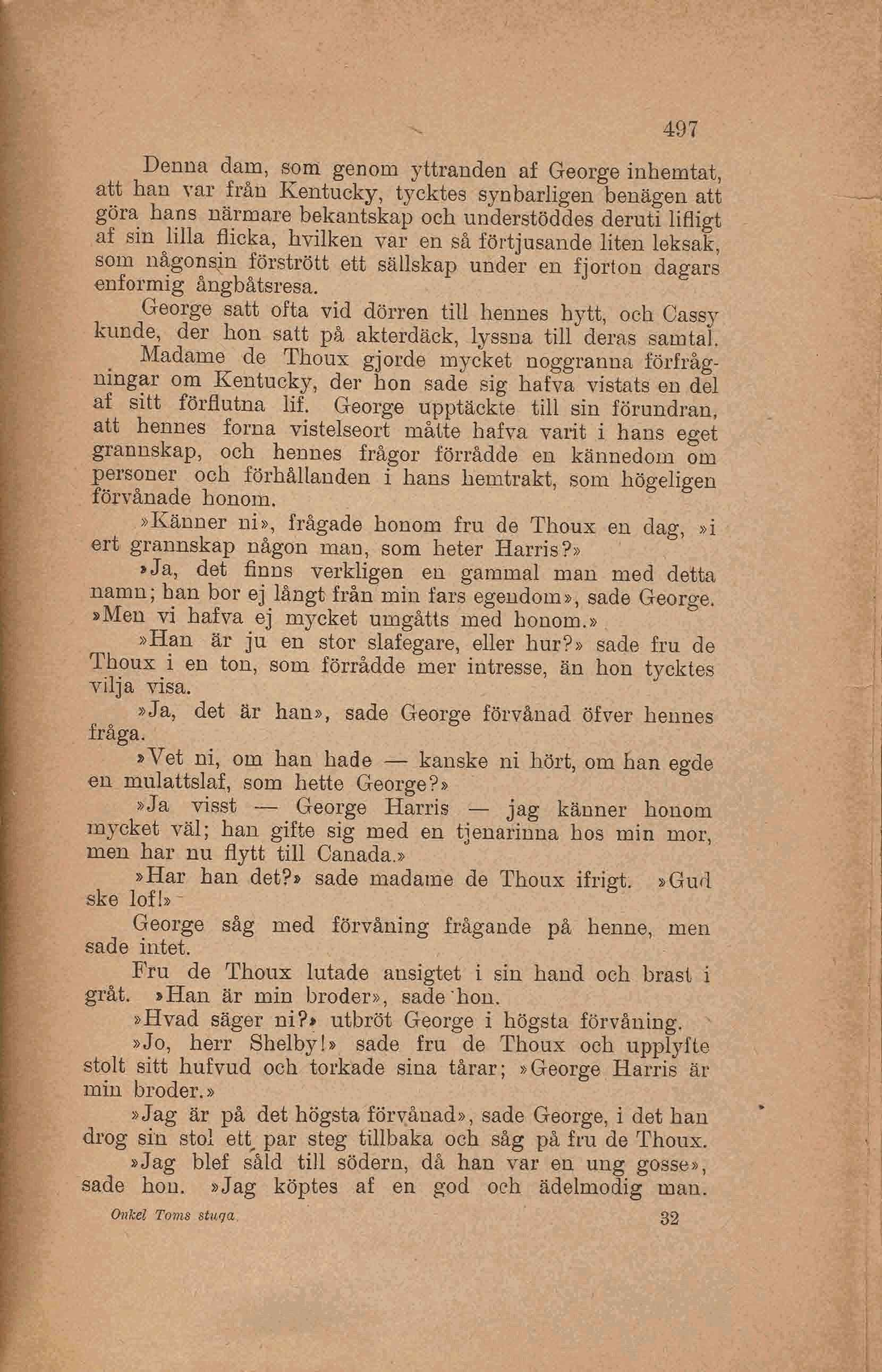 »Jo, herr Shelbyl» sade fru de Thoux och upplyfte