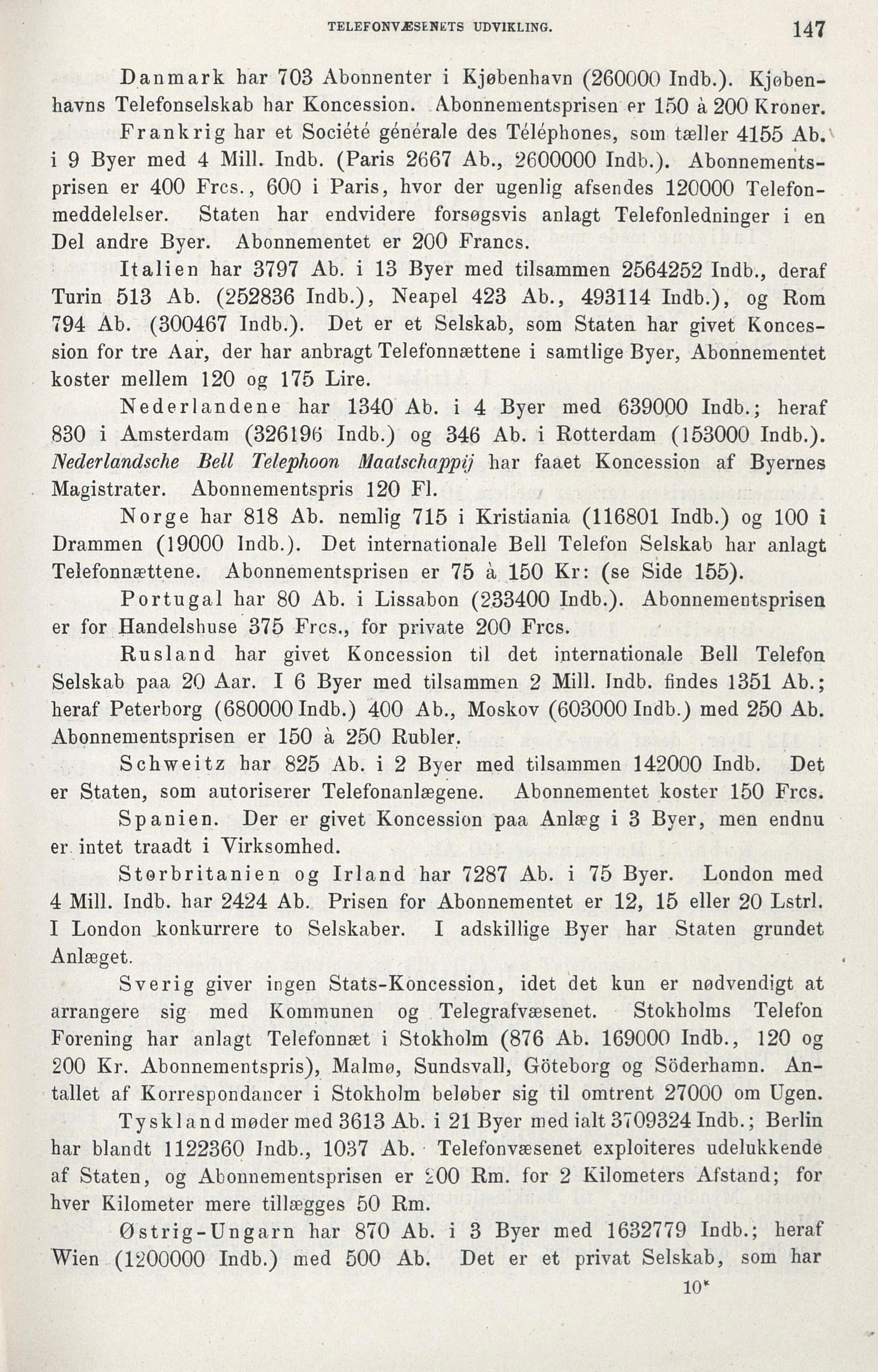 Danmark har 703 Abonnenter i Kjøbenhavn (260000 Indb.).