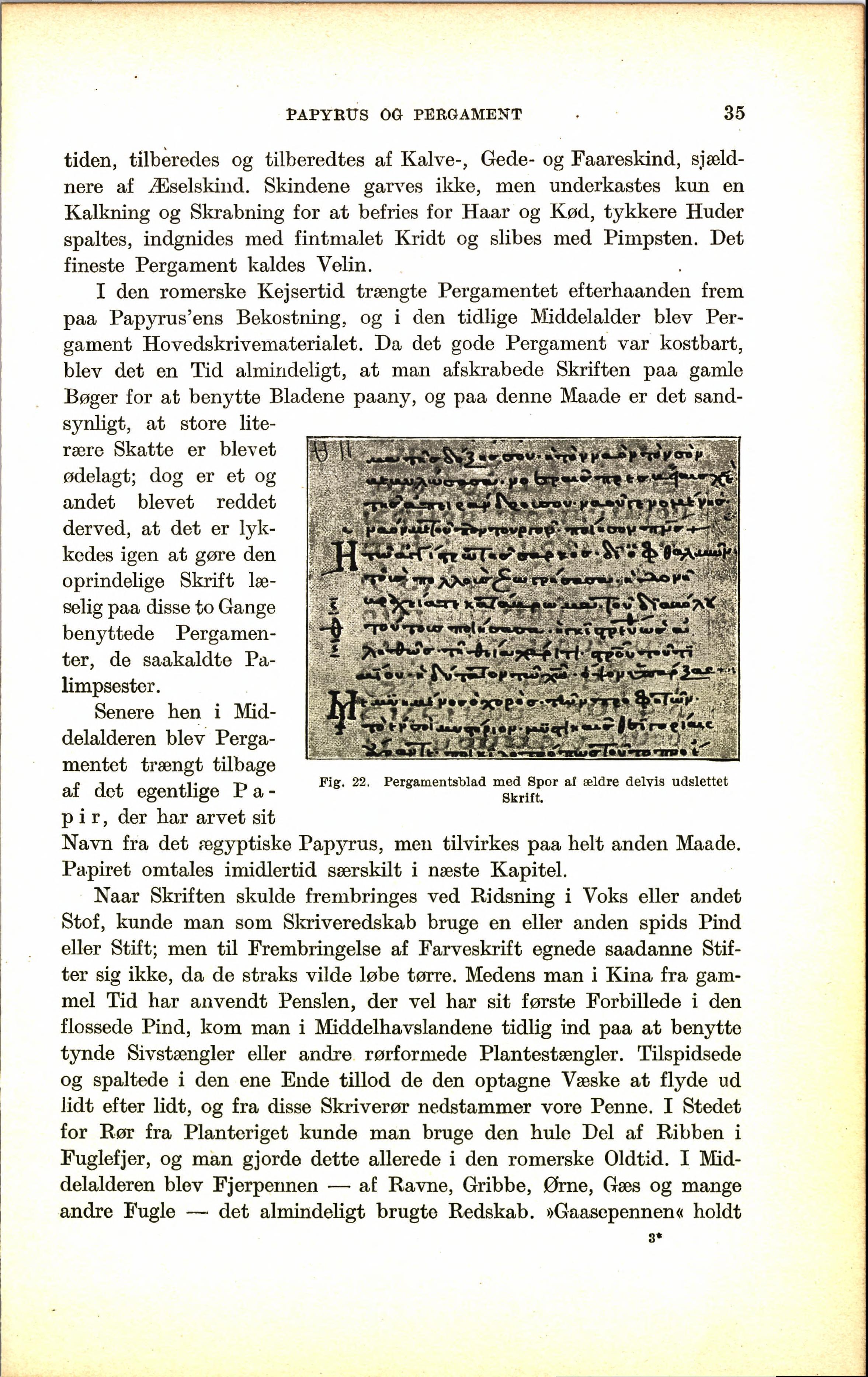 Pig. 22. Pergamentsblad med Spor af ældre delvis udslettet