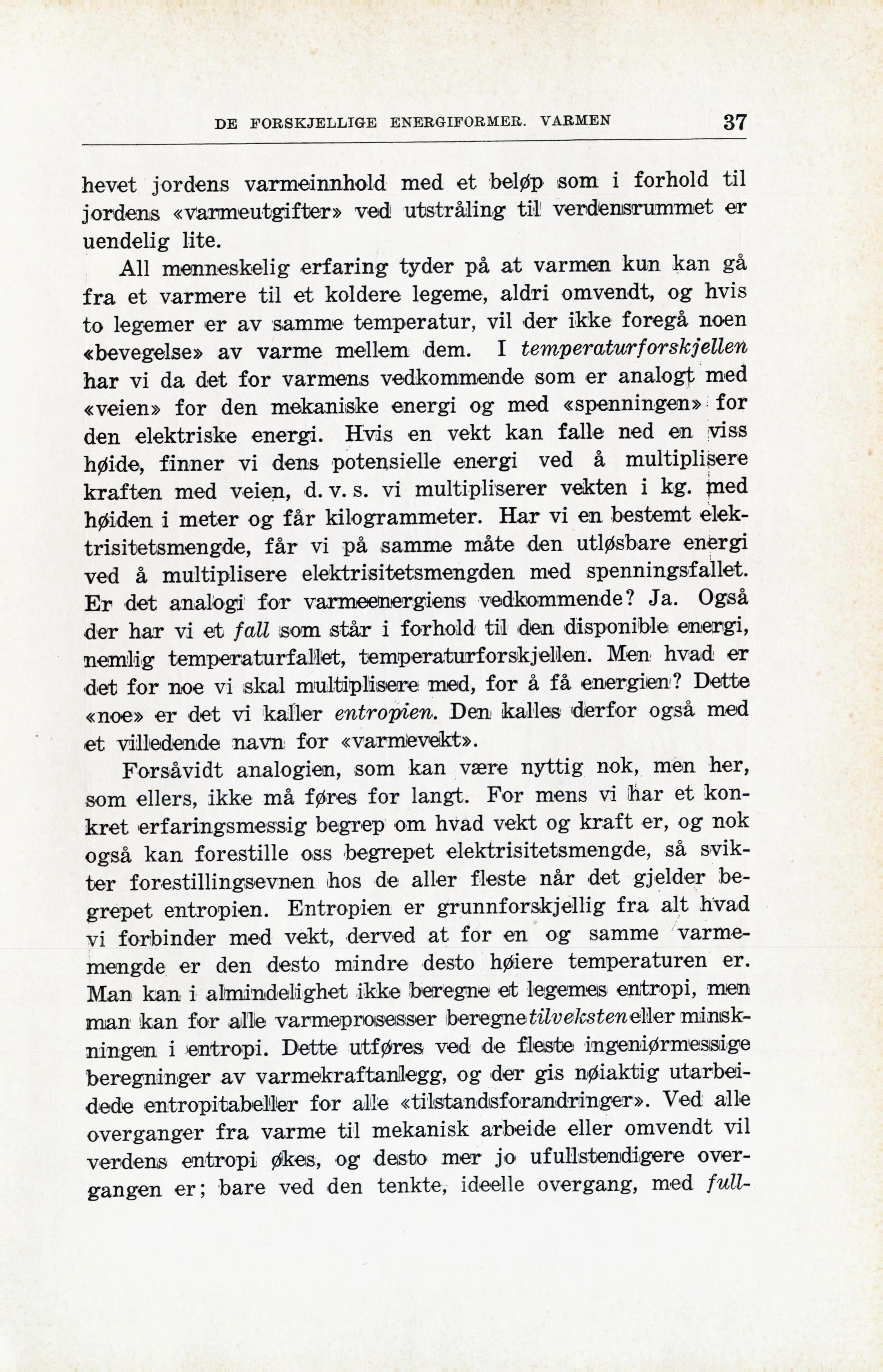 begrepet entropien. Entropien er grunnforskjellig fra alt hvad