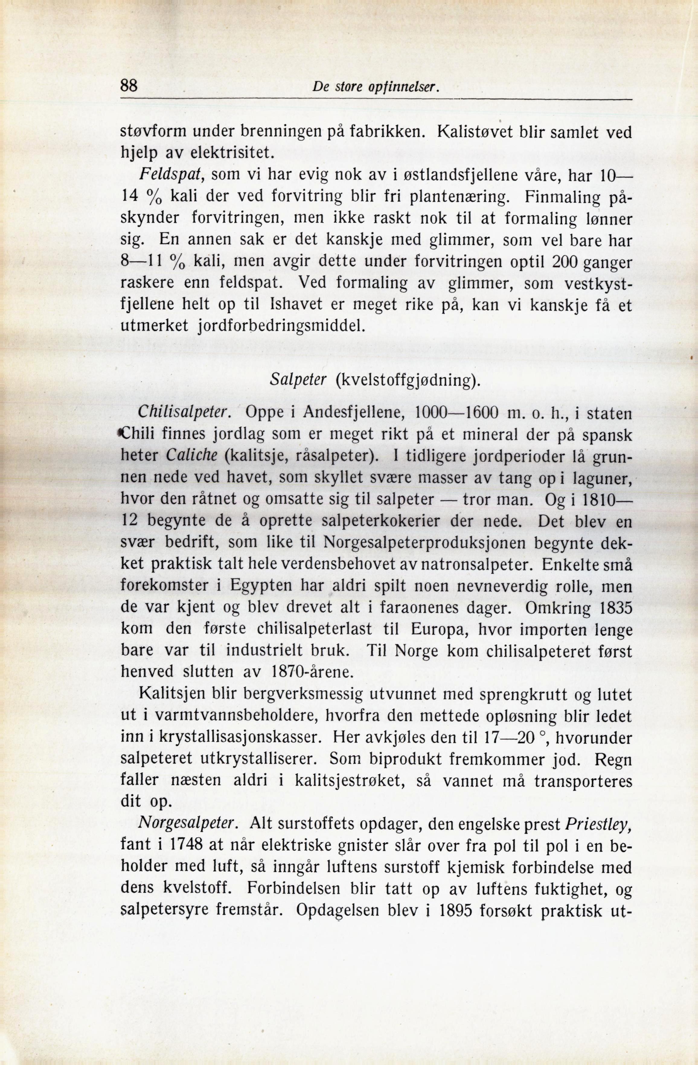 Norgesalpeter. Alt surstoffets opdager, den engelske prest Priestley,