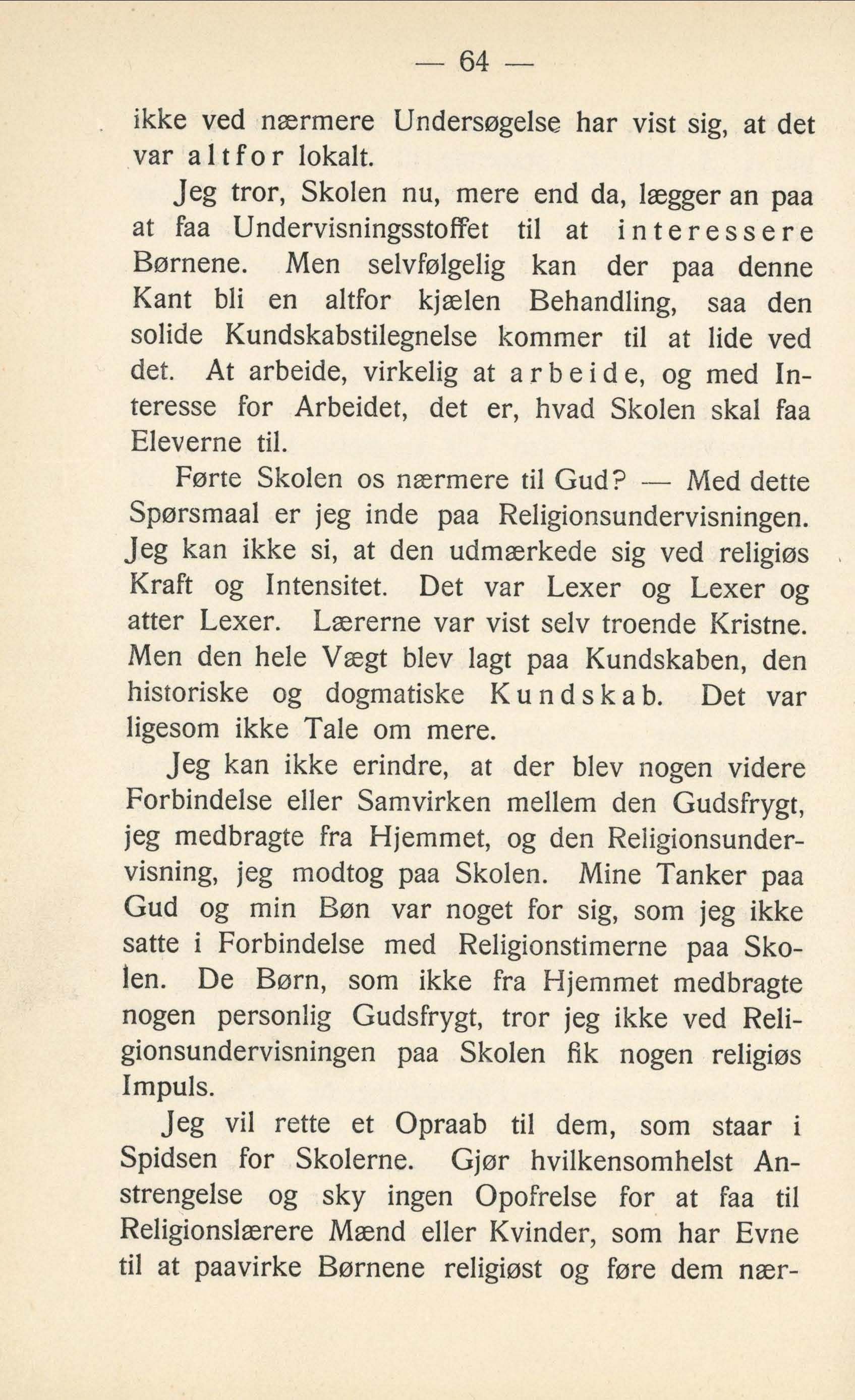 atter Lexer. Lærerne var vist selv troende Kristne.