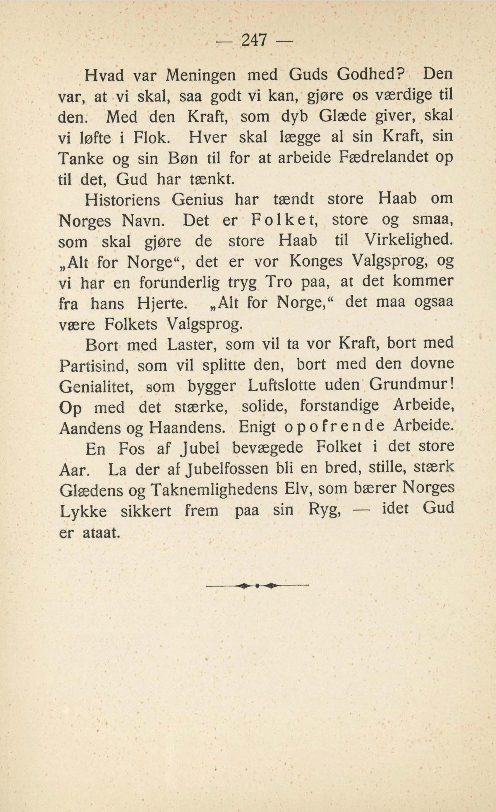 fra hans Hjerte. „Alt for Norge," det maa ogsaa