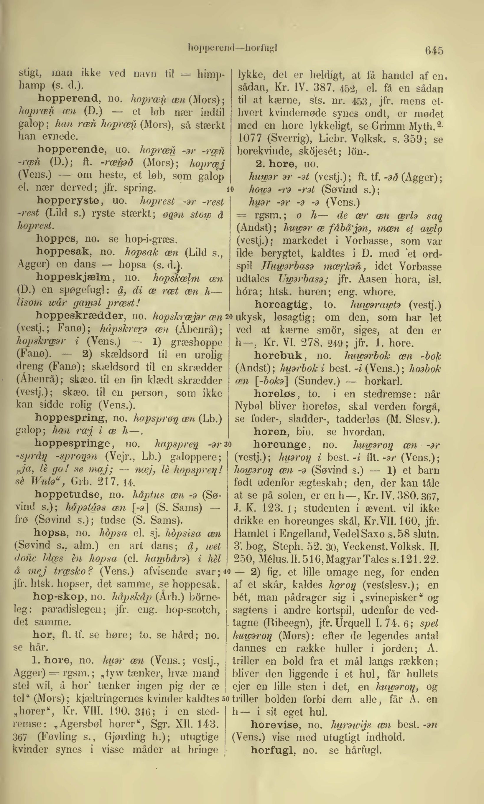 „horer", Kr. VIII. 190. 316; i en sted- h— i sit eget hul.