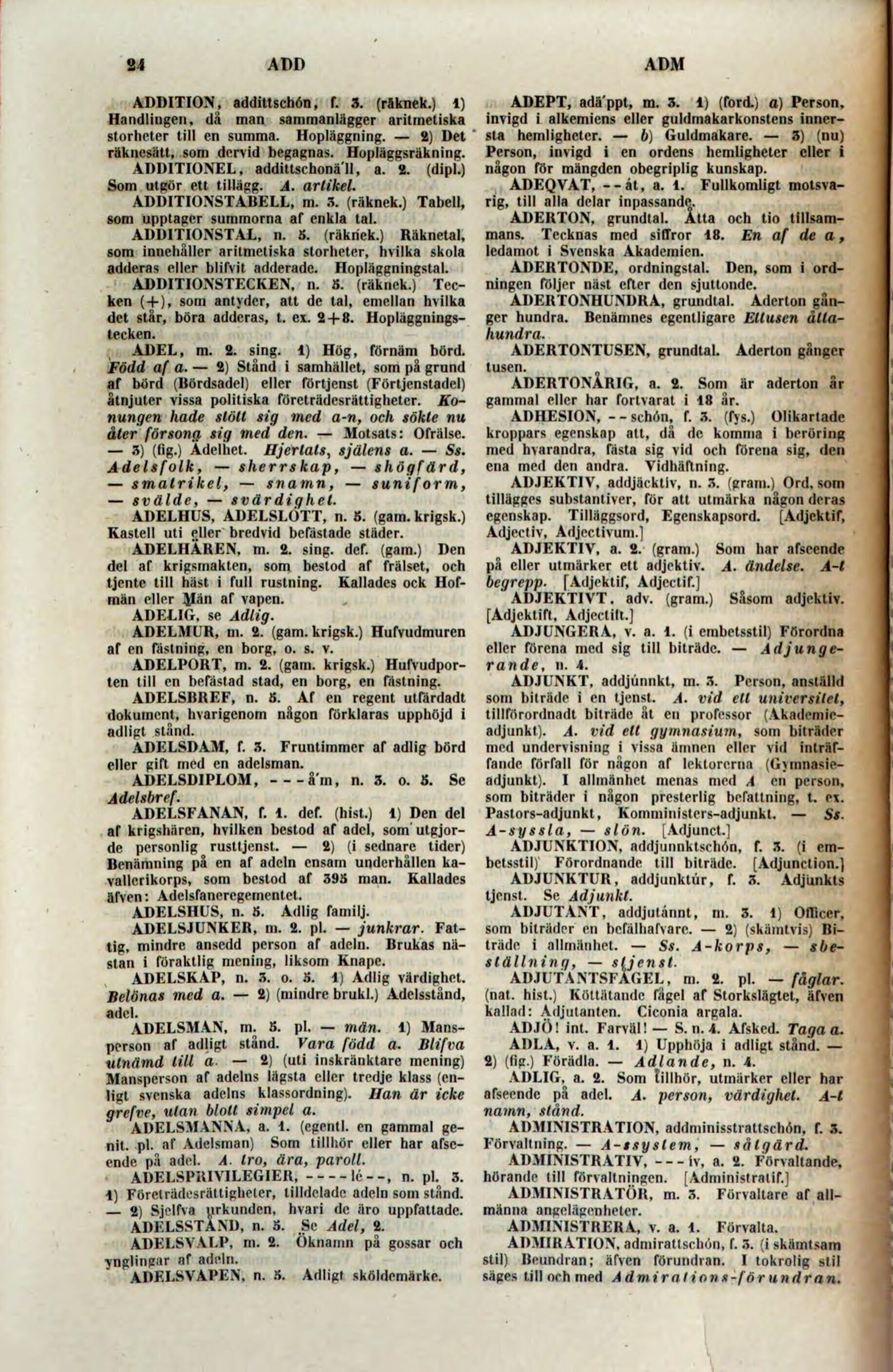 ADEL, m. 2. sing. 4) Hög, förnäm börd.
