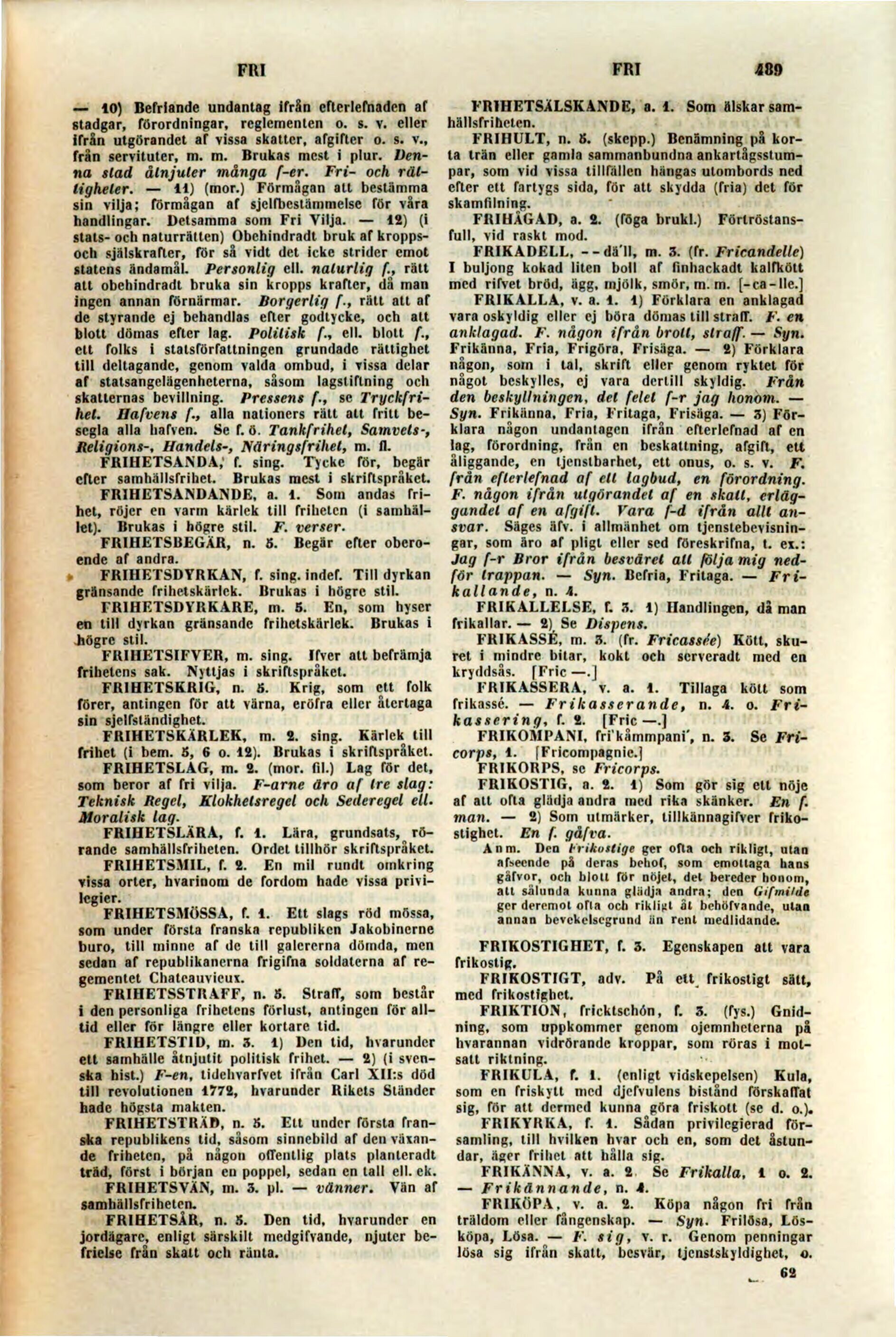rörande samhällsfriheten. Ordet tillhör skriftspråket.