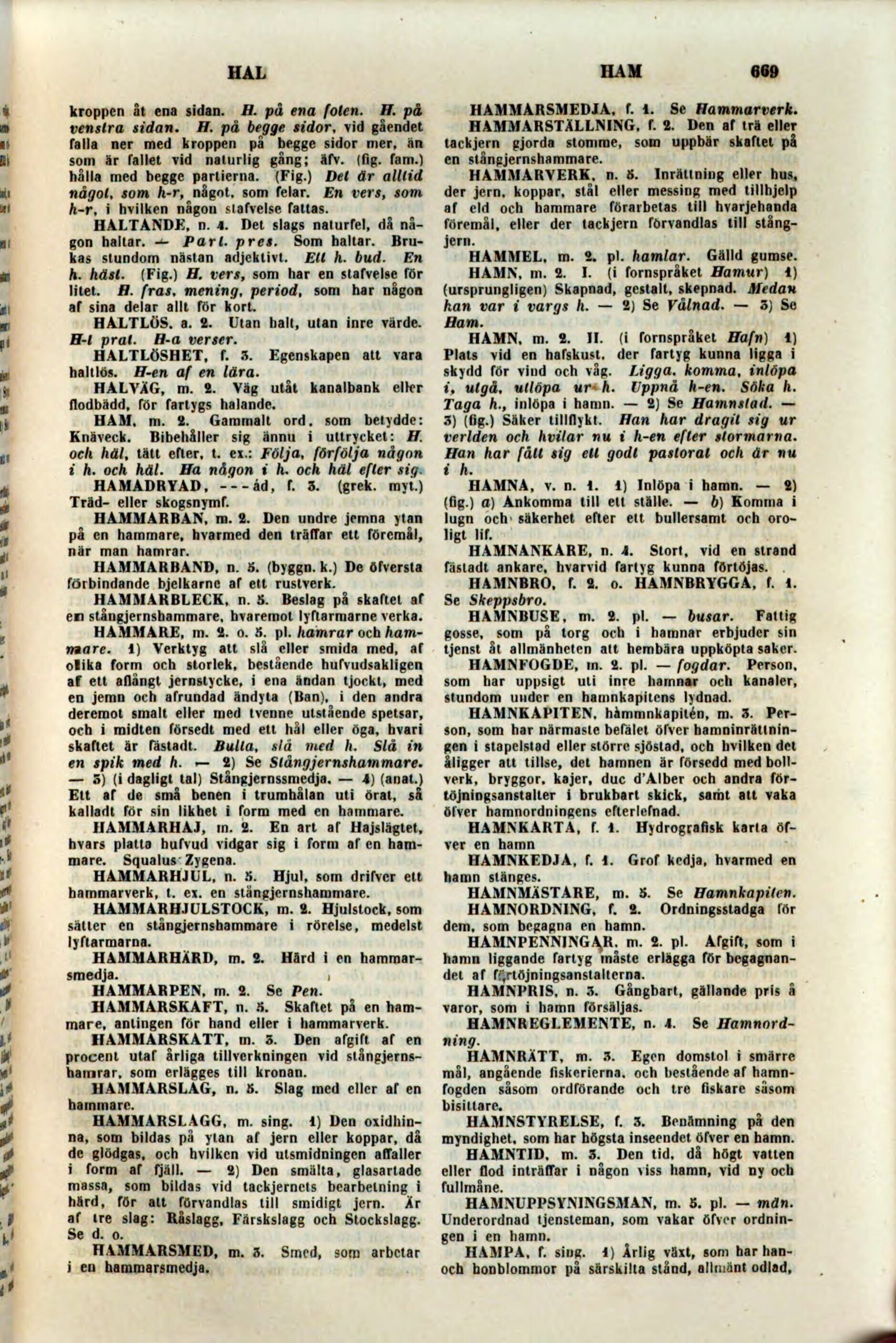 HAMMARE, m. 2. o. 3. pl. hamrar och