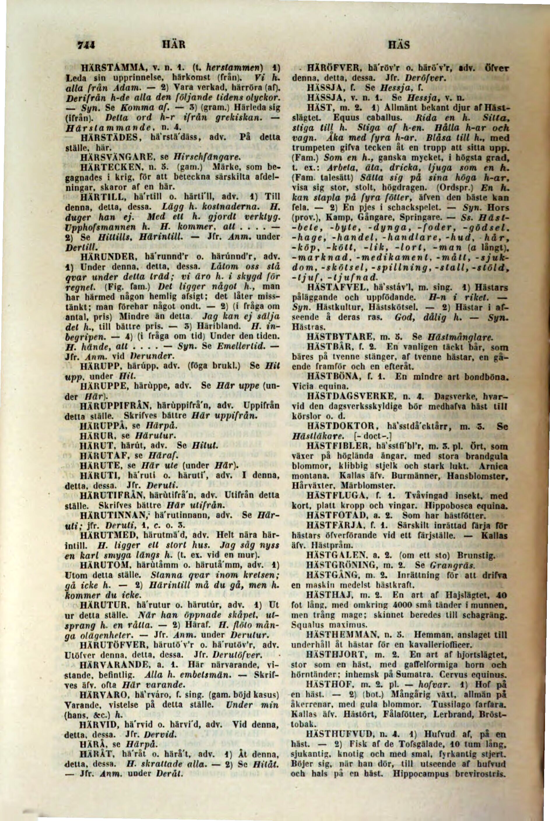 HÄSTAFVEL, hä’sståv’1, m. sing. 4) Hästars