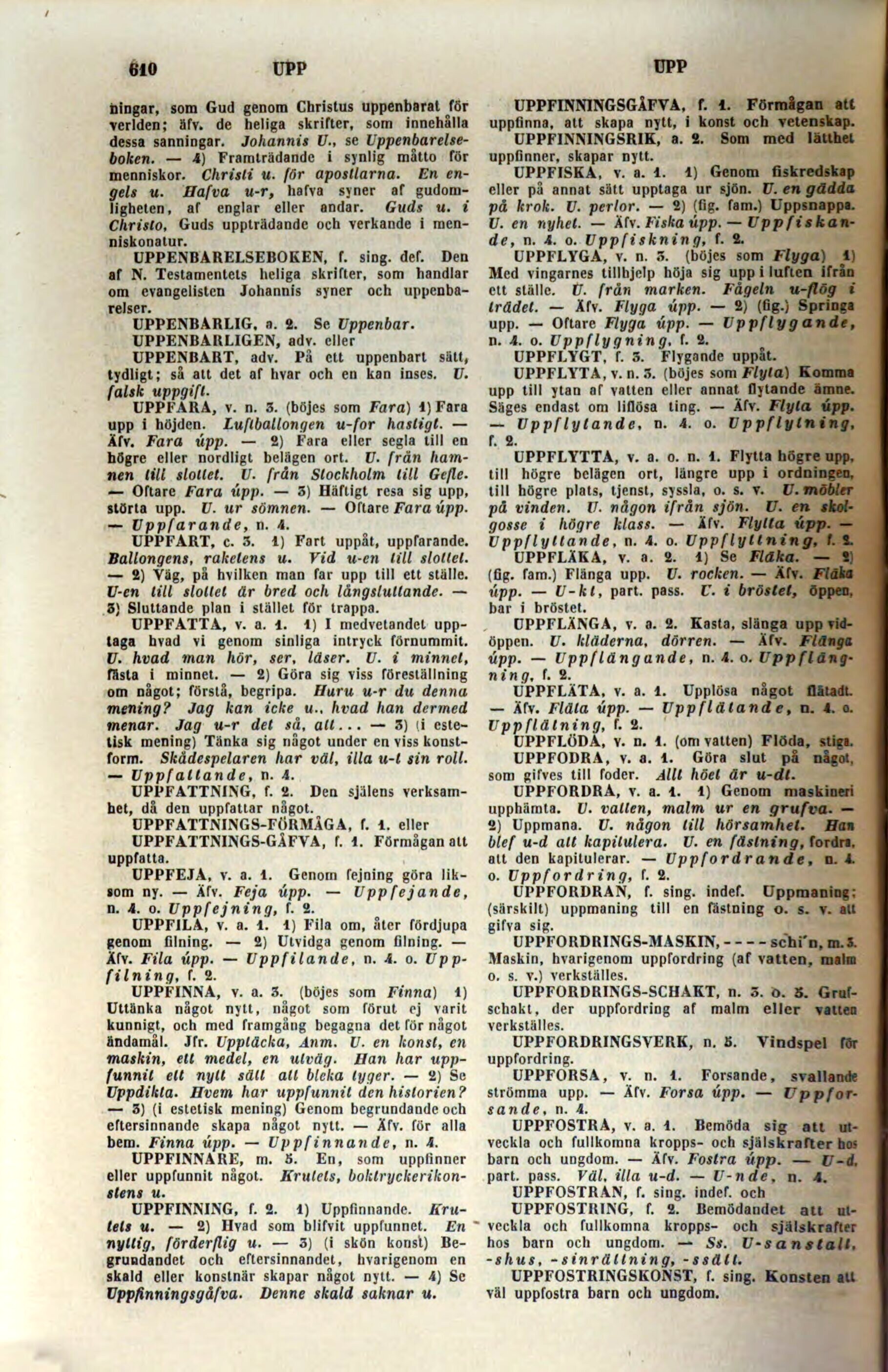 upp. — Oftare Flyga upp. — Uppflyg ande,