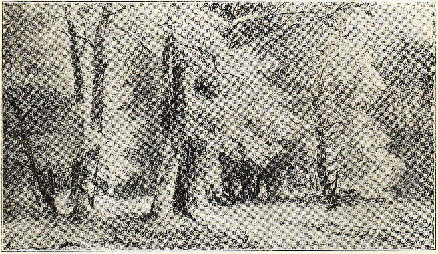 Bokskog. Blyertsteckning af Edv. Bergh. |
