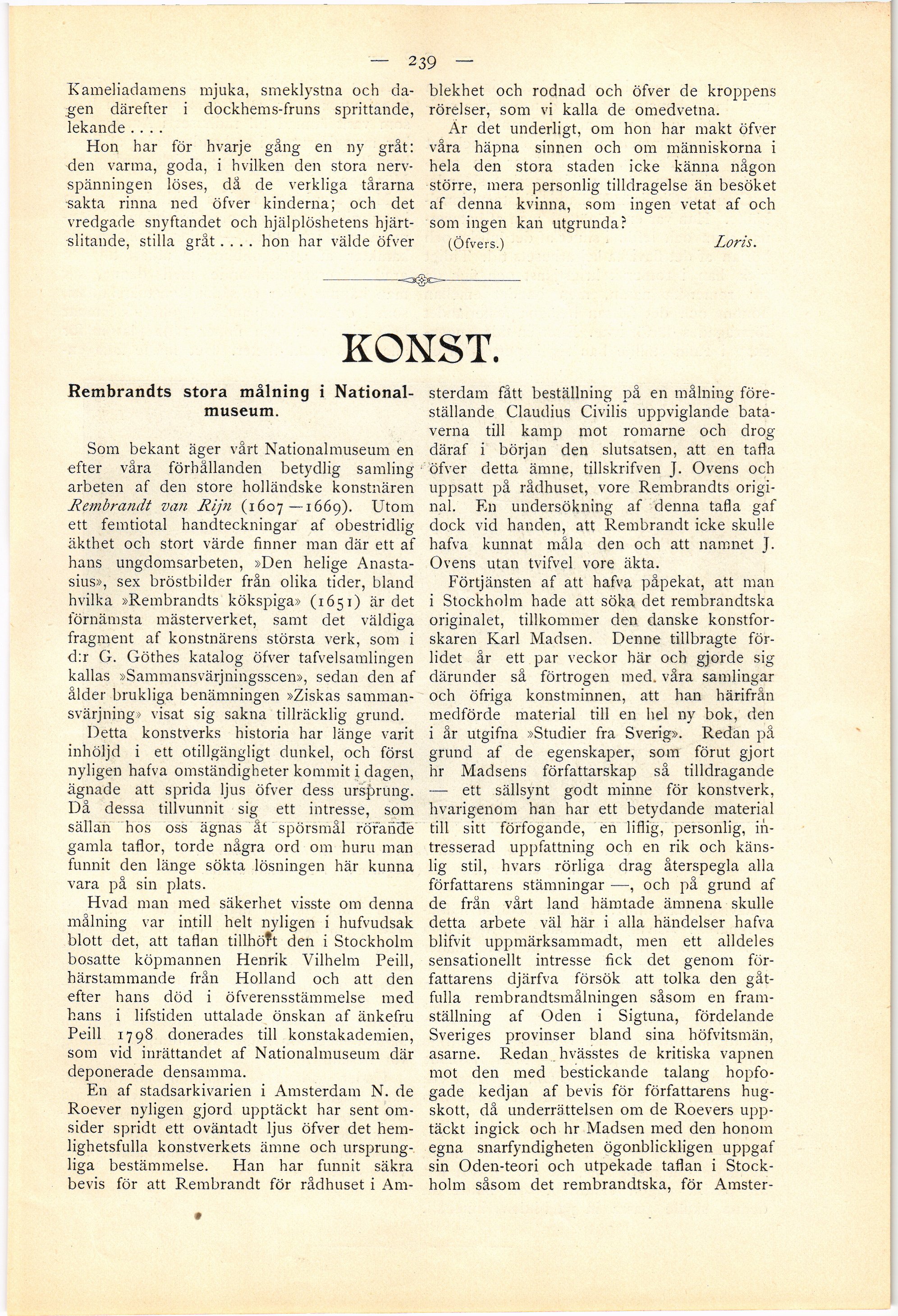 Full resolution (JPEG) - On this page / på denna sida - Teater - Eleonora Duse. En teatervecka i Wien. Af Loris - Konst - Rembrandts stora målning i Nationalmuseum. Af K. W-n