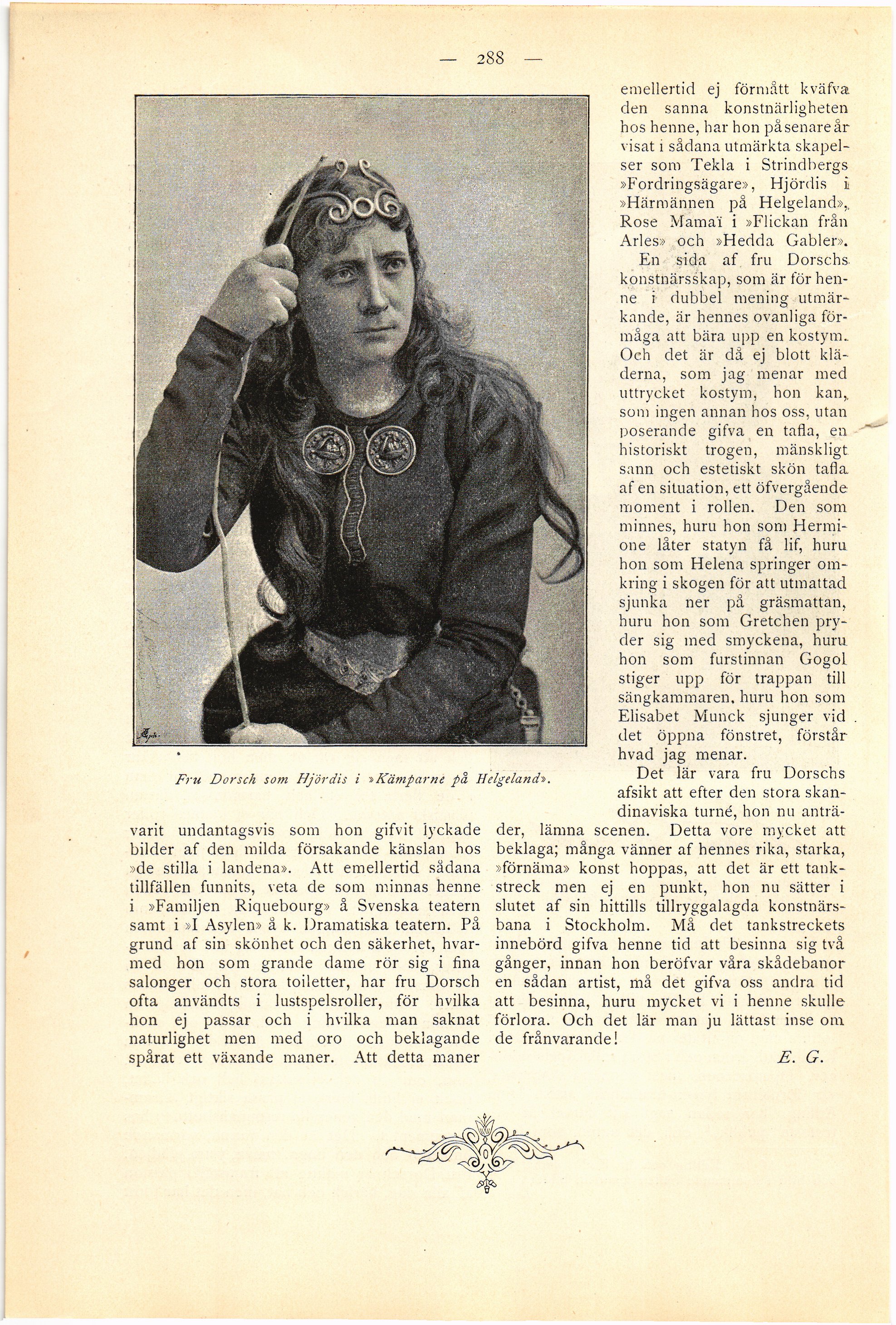Full resolution (JPEG) - On this page / på denna sida - Teater - Lotten Dorsch. Med autograf och 2 porträtt efter fotografier för »Ord och bild» af Augusta Kindahl. Af E. G.