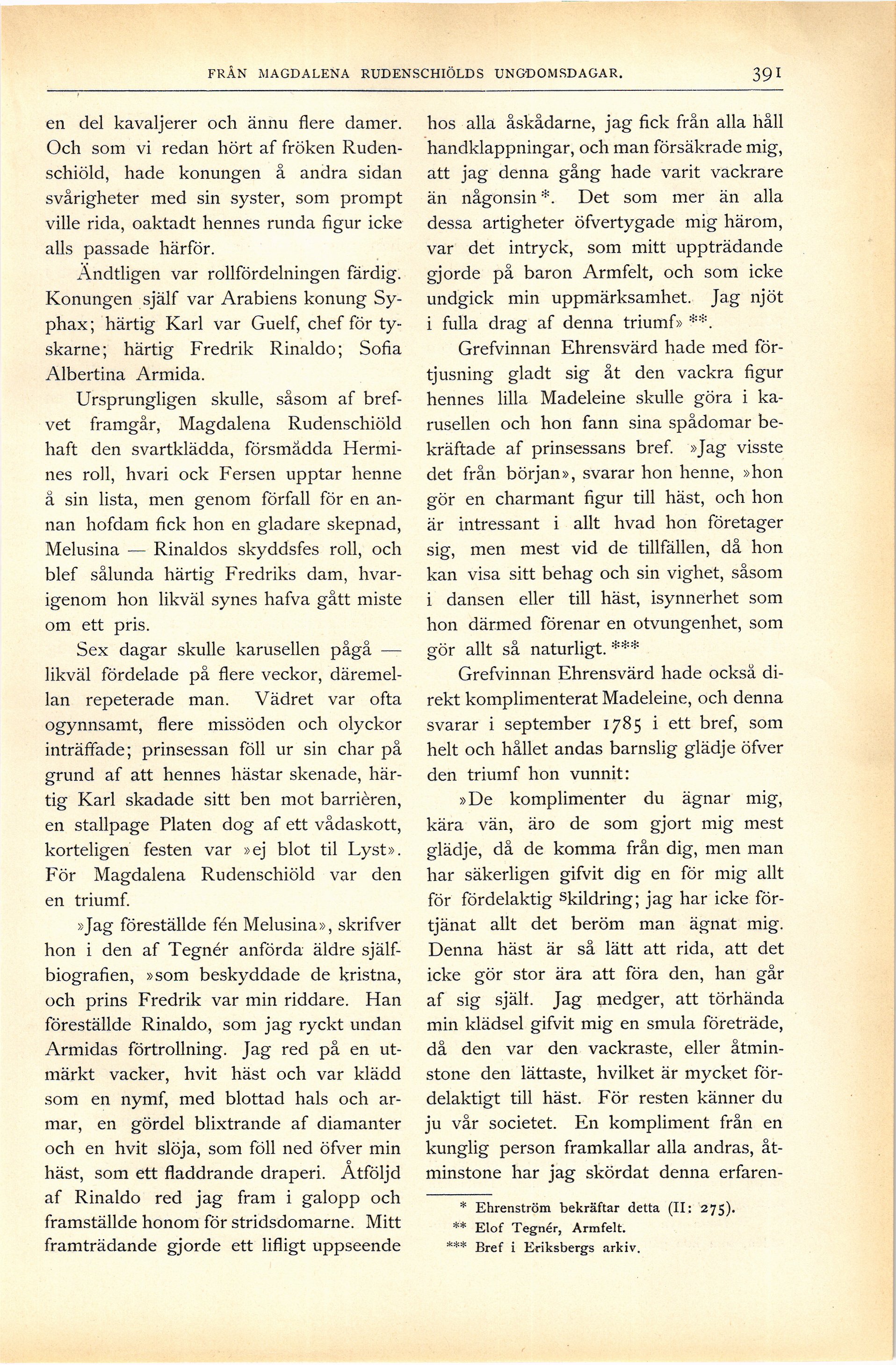 ** Elof Tegnér, Armfelt.