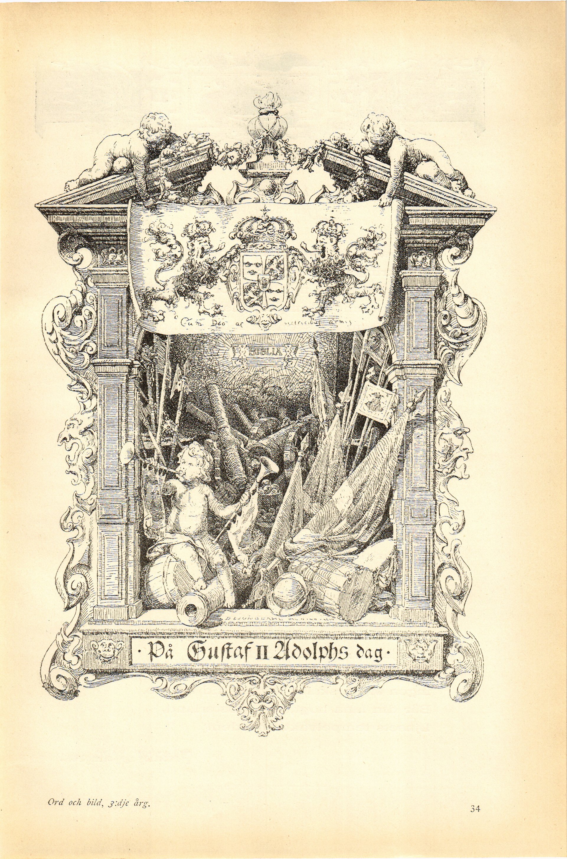 Full resolution (JPEG) - On this page / på denna sida - Tolfte häftet - På Gustaf II Adolphs dag. Den 9 December. Af Frithiof Holmgren. Med 2 teckningar af David Ljungdahl