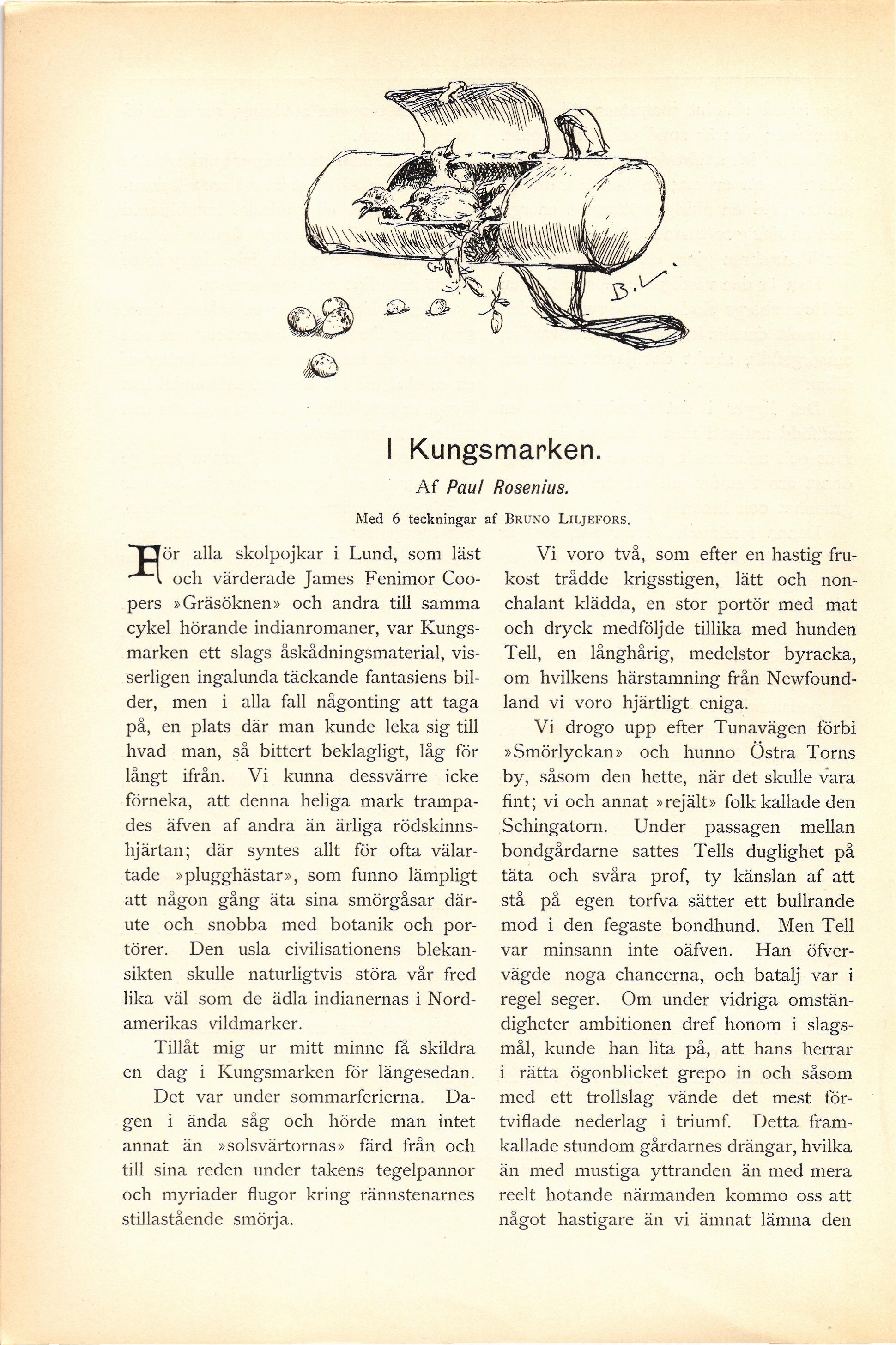 Full resolution (JPEG) - On this page / på denna sida - Tredje häftet - I Kungsmarken. Af Paul Rosenius. Med 6 teckningar af Bruno Liljefors