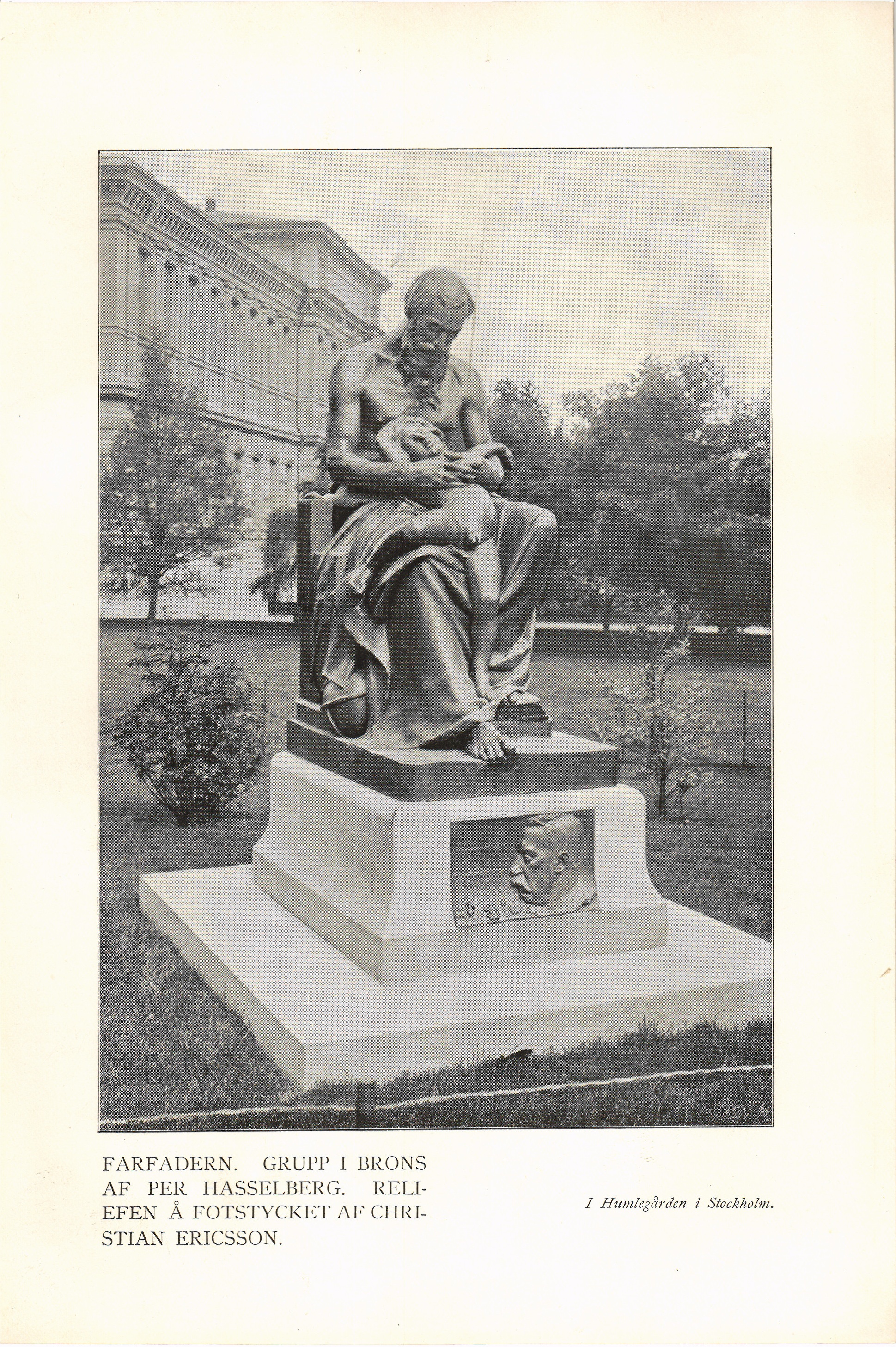 Full resolution (JPEG) - On this page / på denna sida - Sjunde häftet - Farfadern. Grupp i brons af Per Hasselberg. Reliefen å fotstycket af Christian Ericsson