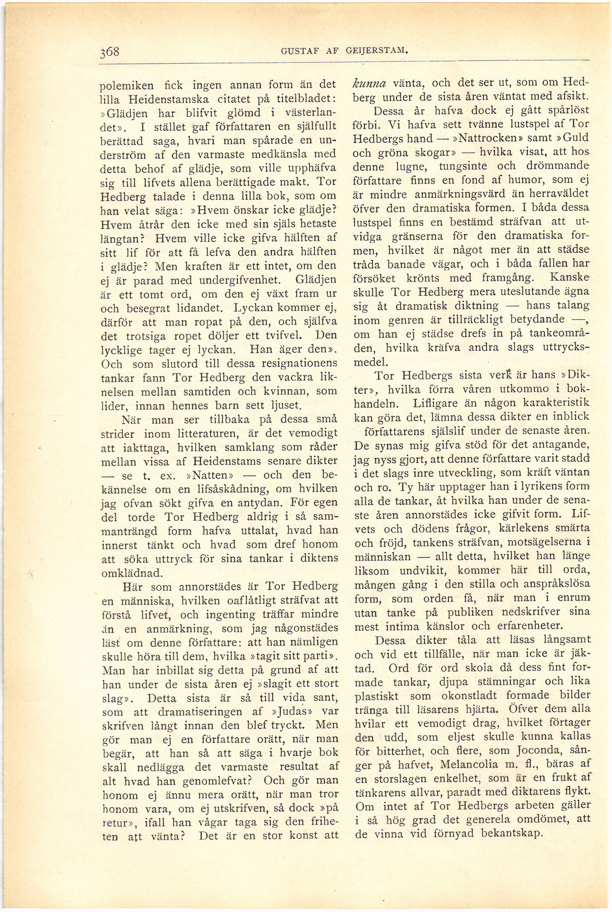 Full resolution (JPEG) - On this page / på denna sida - Åttonde häftet - Litteratur. Tor Hedberg. Af Gustaf af Geijerstam