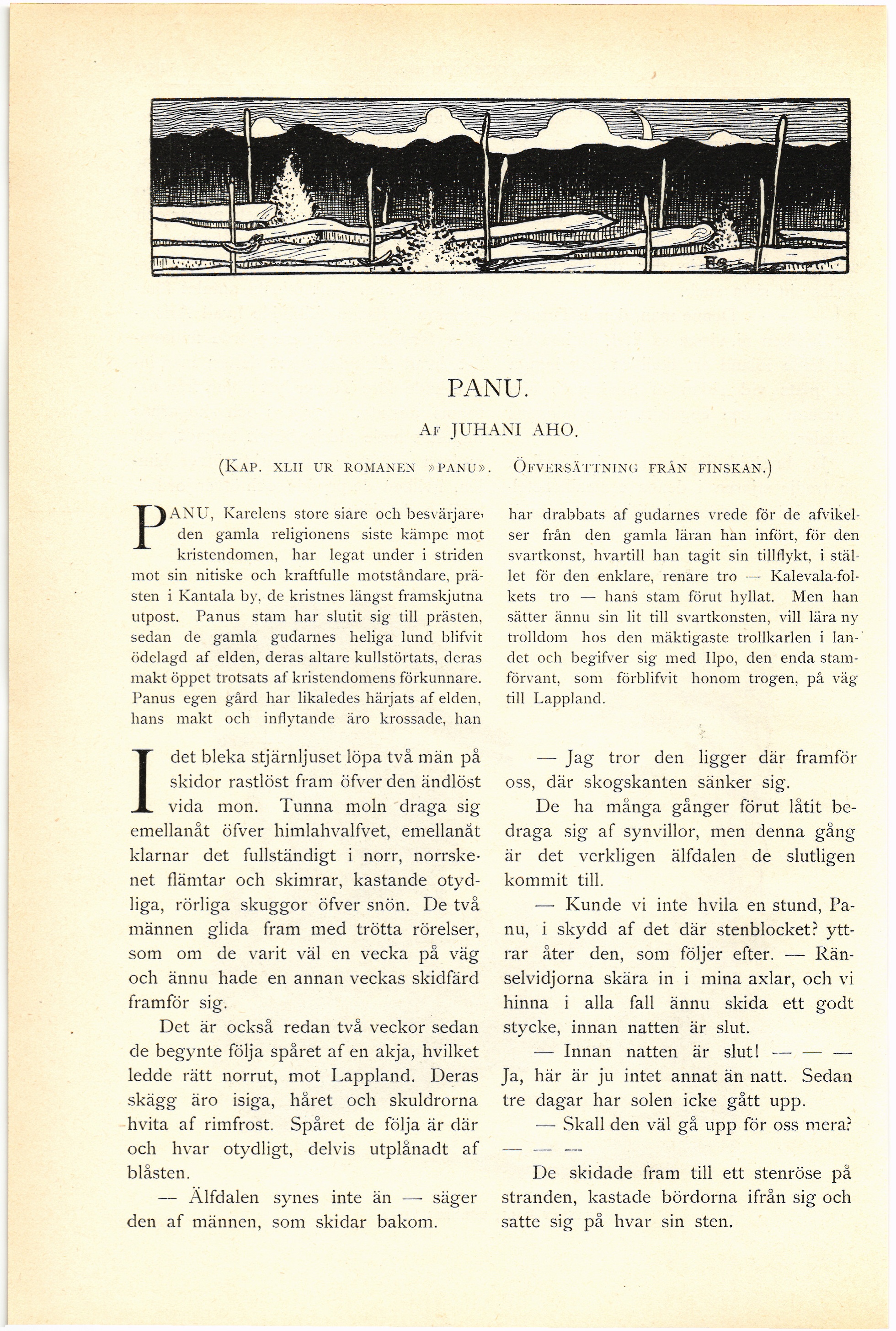 Full resolution (JPEG) - On this page / på denna sida - Fjärde häftet - Panu. Af Juhani Aho. (Kap. XLII ur romanen »Panu». Öfversättning från finskan)