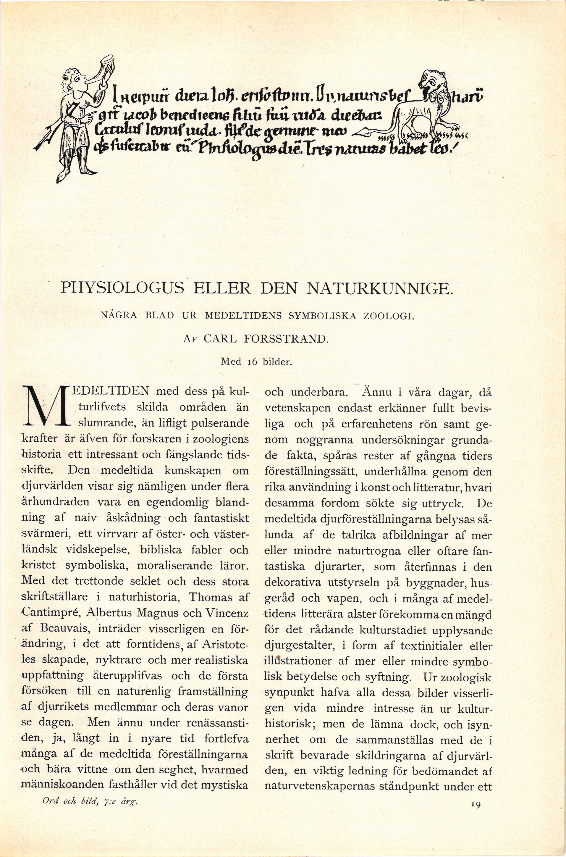 NÅGRA BLAD UR MEDELTIDENS SYMBOLISKA ZOOLOGI.