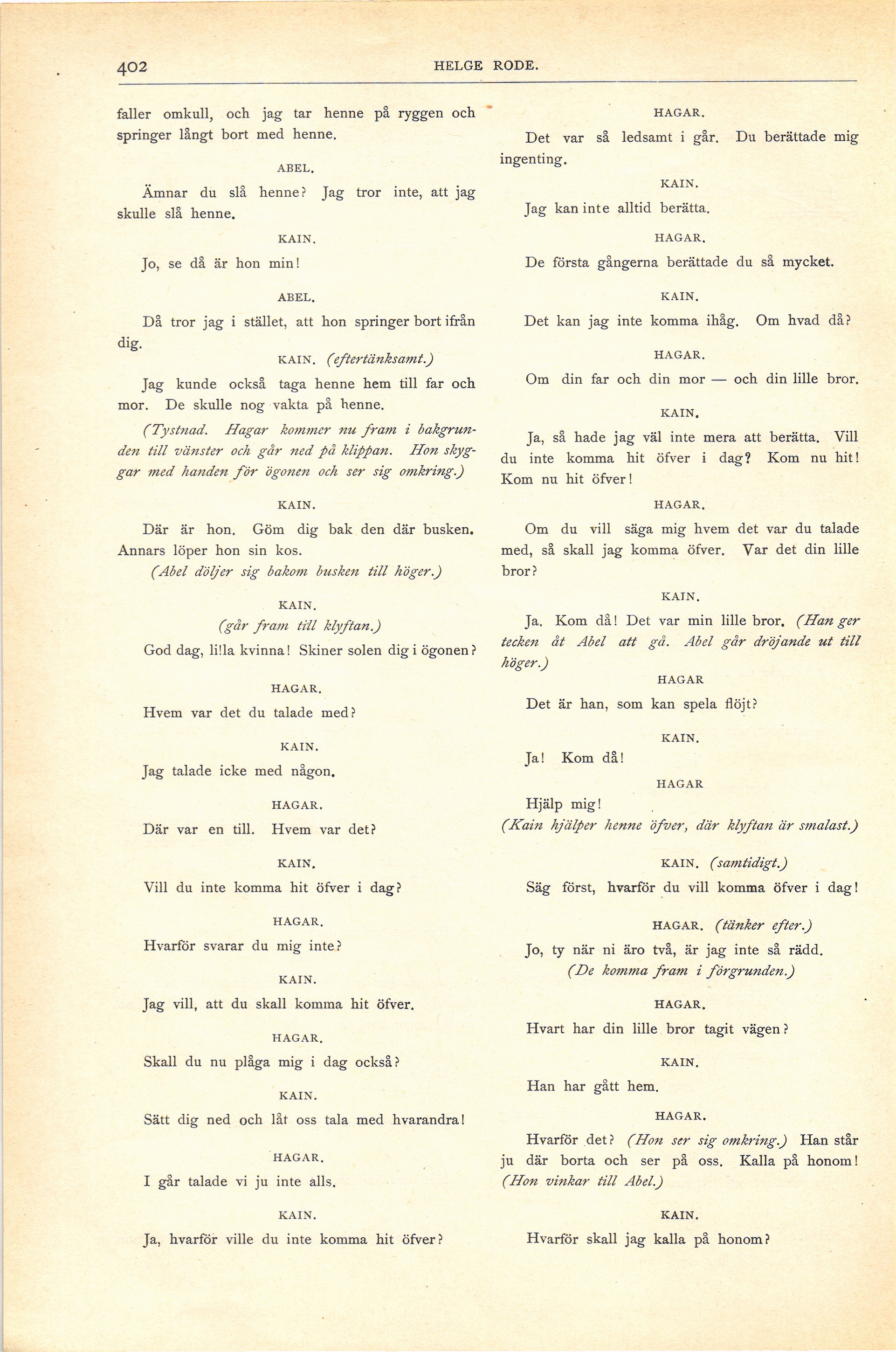 Full resolution (JPEG) - On this page / på denna sida - Nionde häftet - Kain och Abel. Drama i 1 akt af Helge Rode. Öfversättning från författarens manuskript af A. R—e