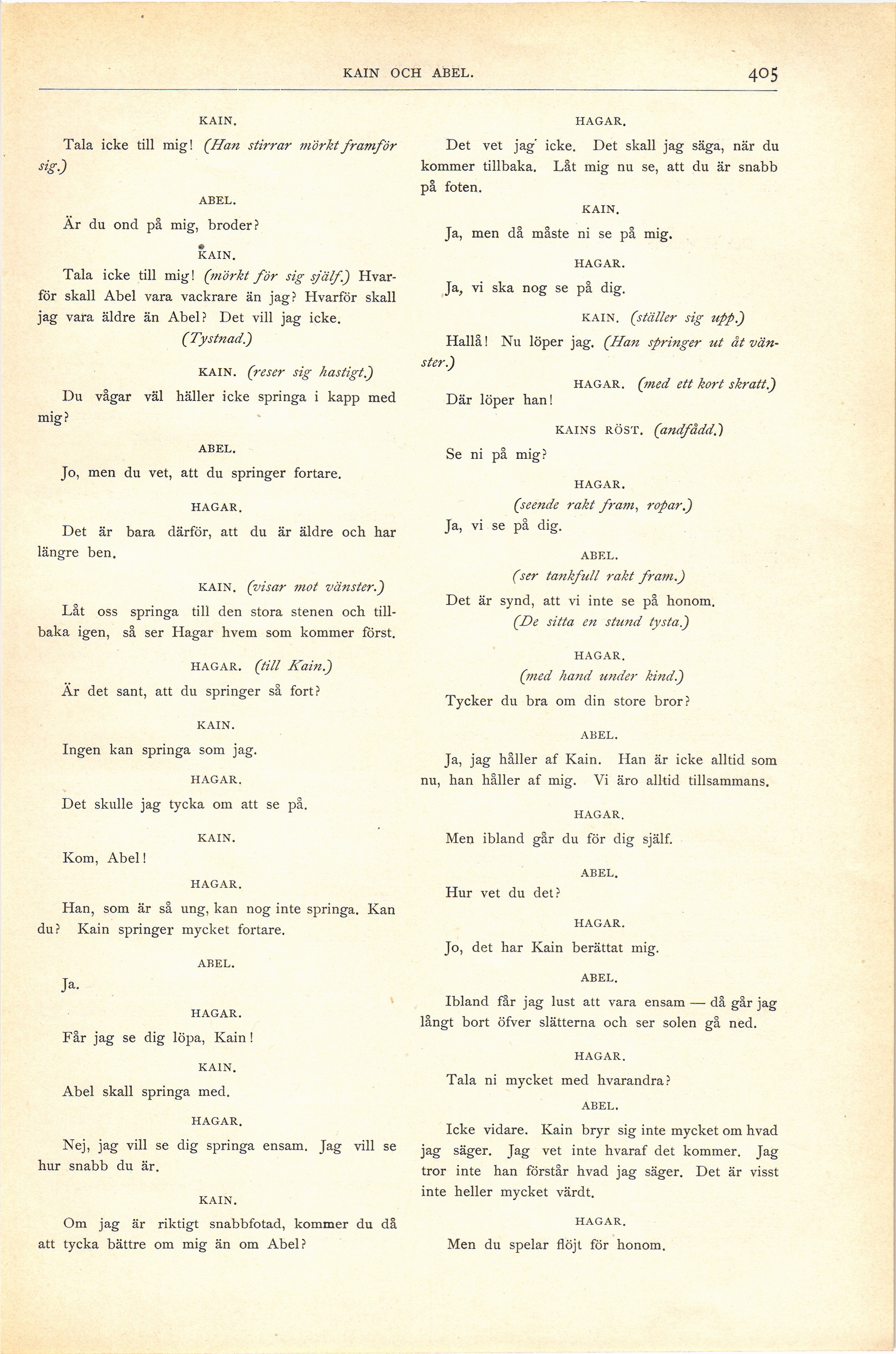 Full resolution (JPEG) - On this page / på denna sida - Nionde häftet - Kain och Abel. Drama i 1 akt af Helge Rode. Öfversättning från författarens manuskript af A. R—e