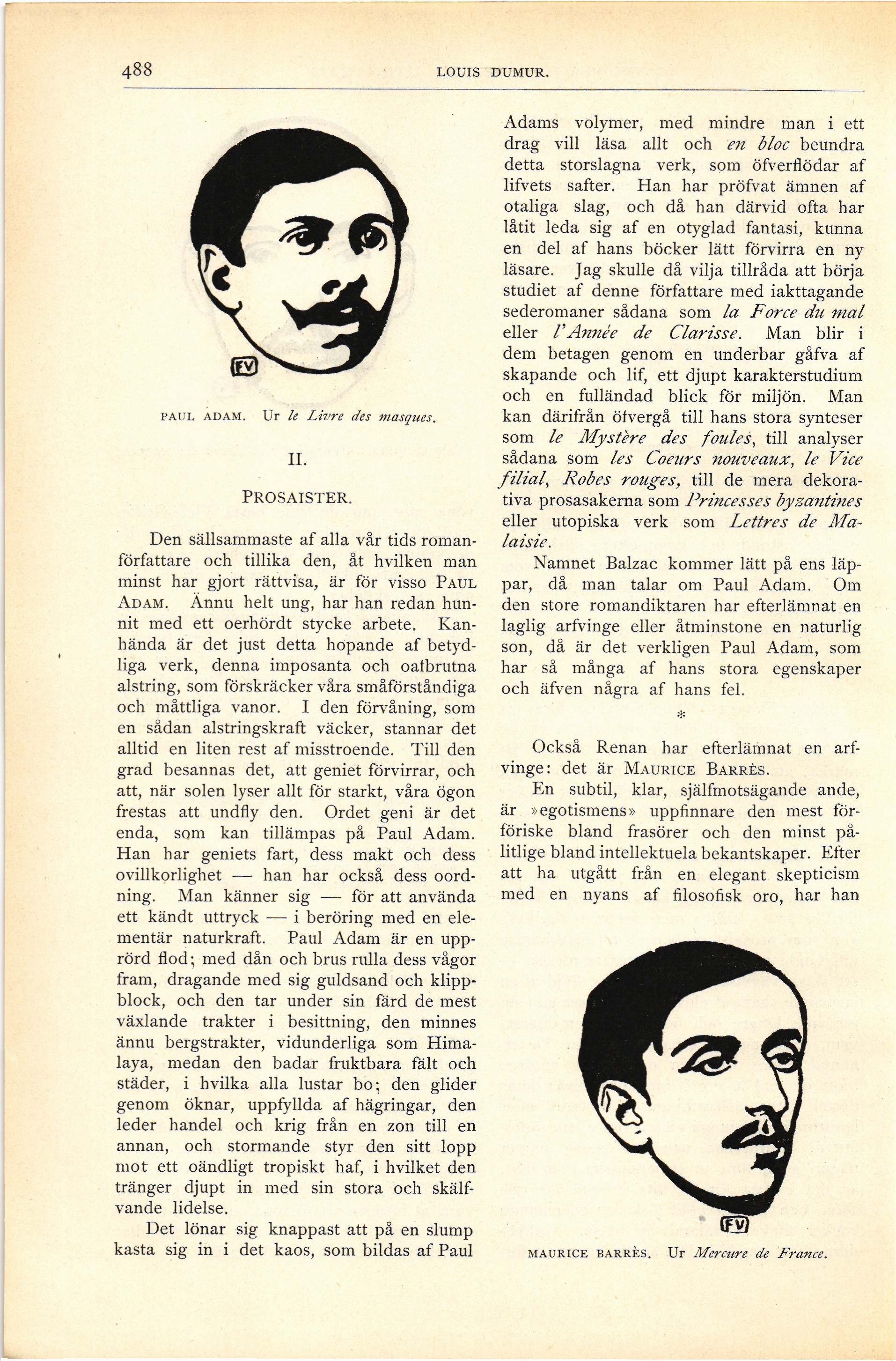 Full resolution (JPEG) - On this page / på denna sida - Tionde häftet - De nykomna i den franska litteraturen. Af Louis Dumur. Öfversättning från författarens manuskript. Med 13 bilder efter teckningar af Félix Vallotton - II. Prosaister