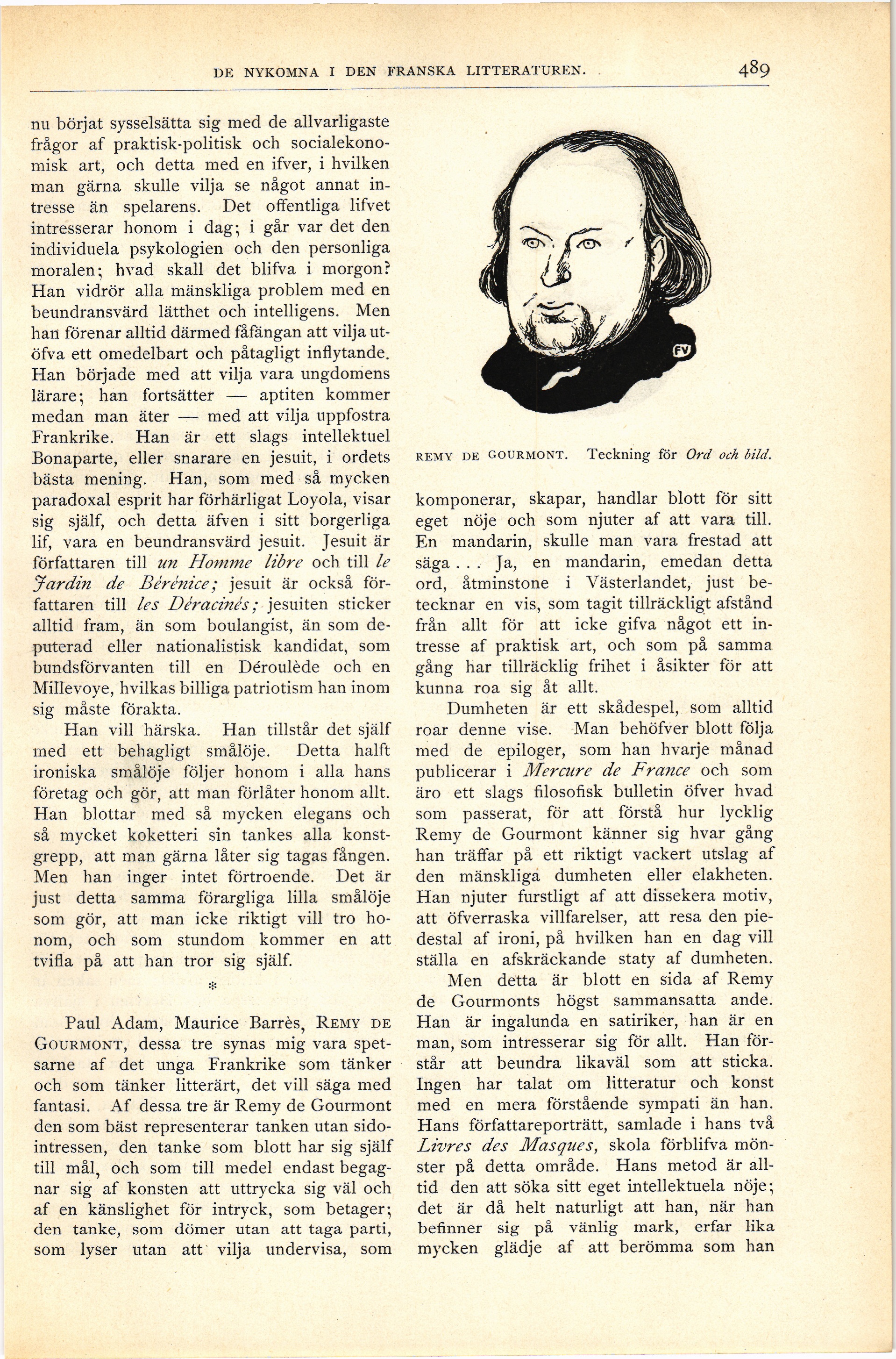 REMY DE GOURMONT. Teckning för Ord och bild.