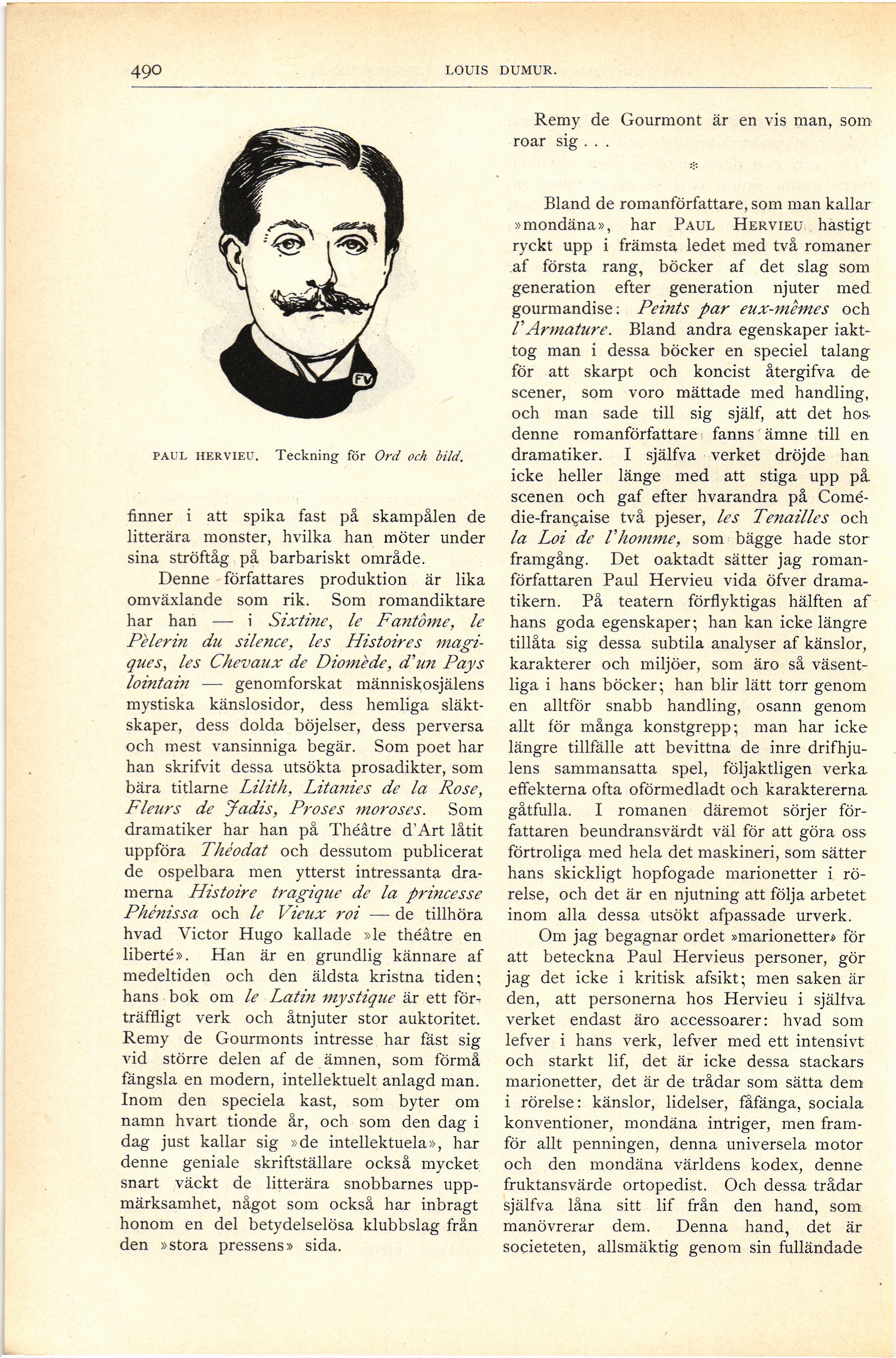 PAUL HERVIEU. Teckning för Ord och bild.