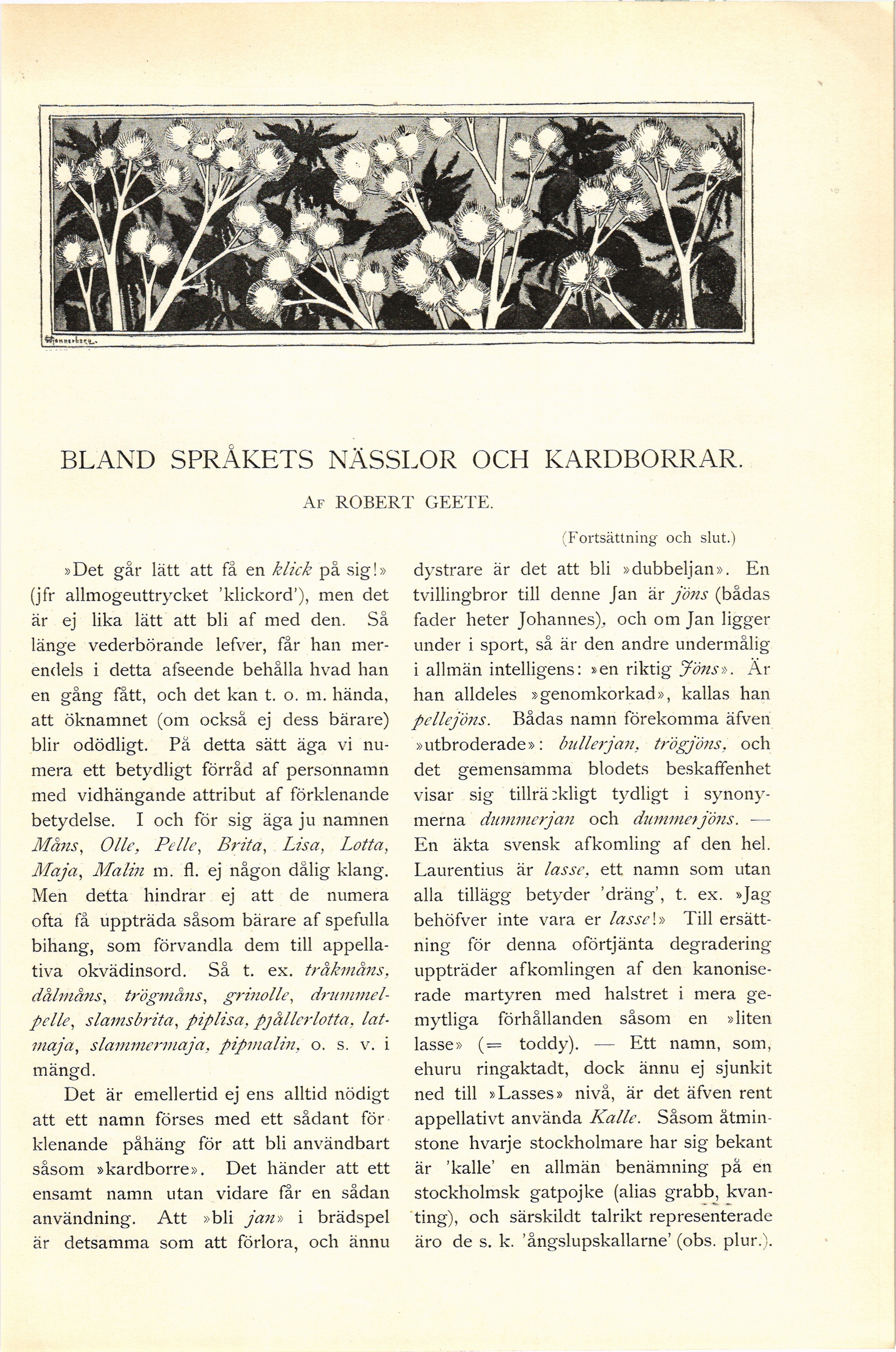Full resolution (JPEG) - On this page / på denna sida - Tolfte häftet - Bland språkets nässlor och kardborrar. Af Robert Geete (Fortsättning och slut)