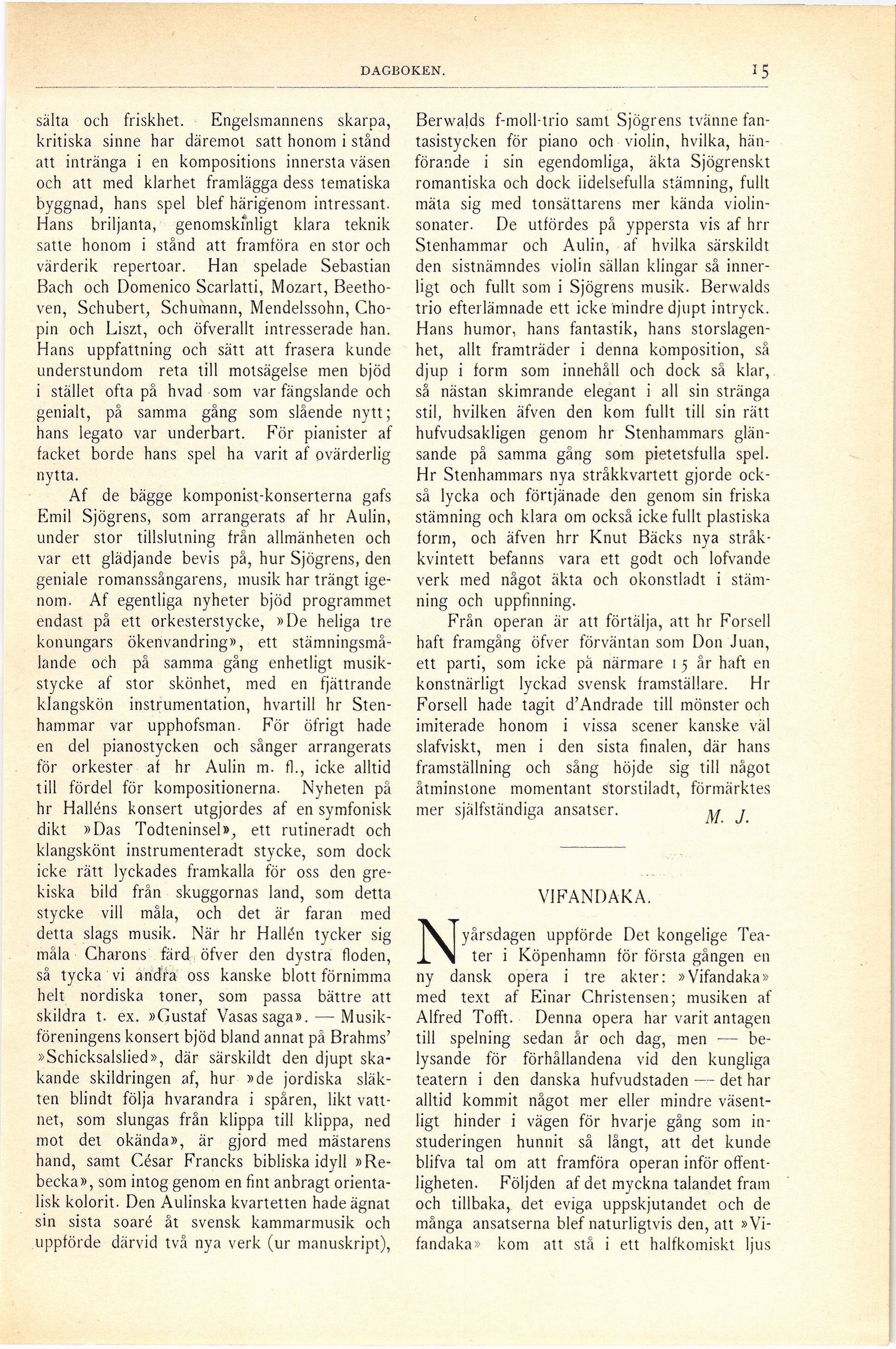 Full resolution (JPEG) - On this page / på denna sida - Dagboken. Bilaga till Ord och Bild - N:r 2, Febr. - Musik. Af M. J. - Vifandaka. Af Gustav Hetsch