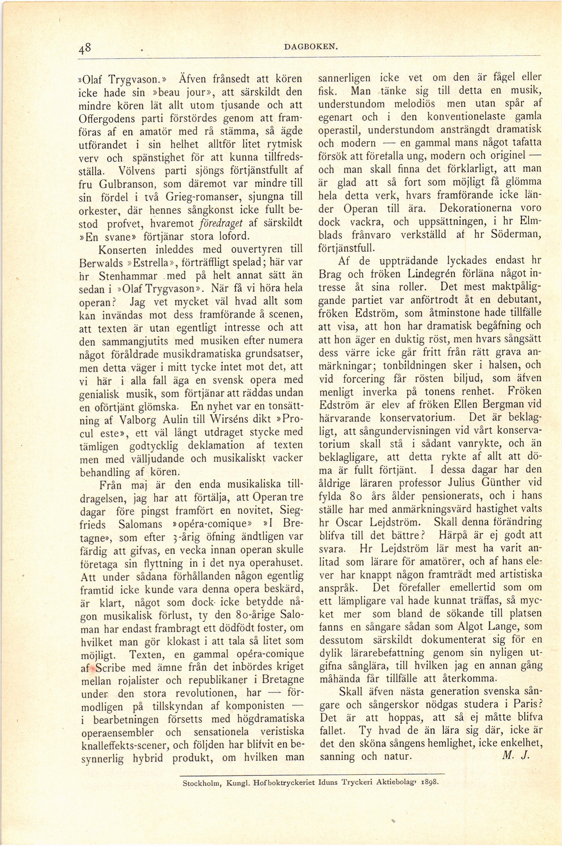 Full resolution (JPEG) - On this page / på denna sida - Dagboken. Bilaga till Ord och Bild - N:r 6, Juni - Musik. Af M. J.