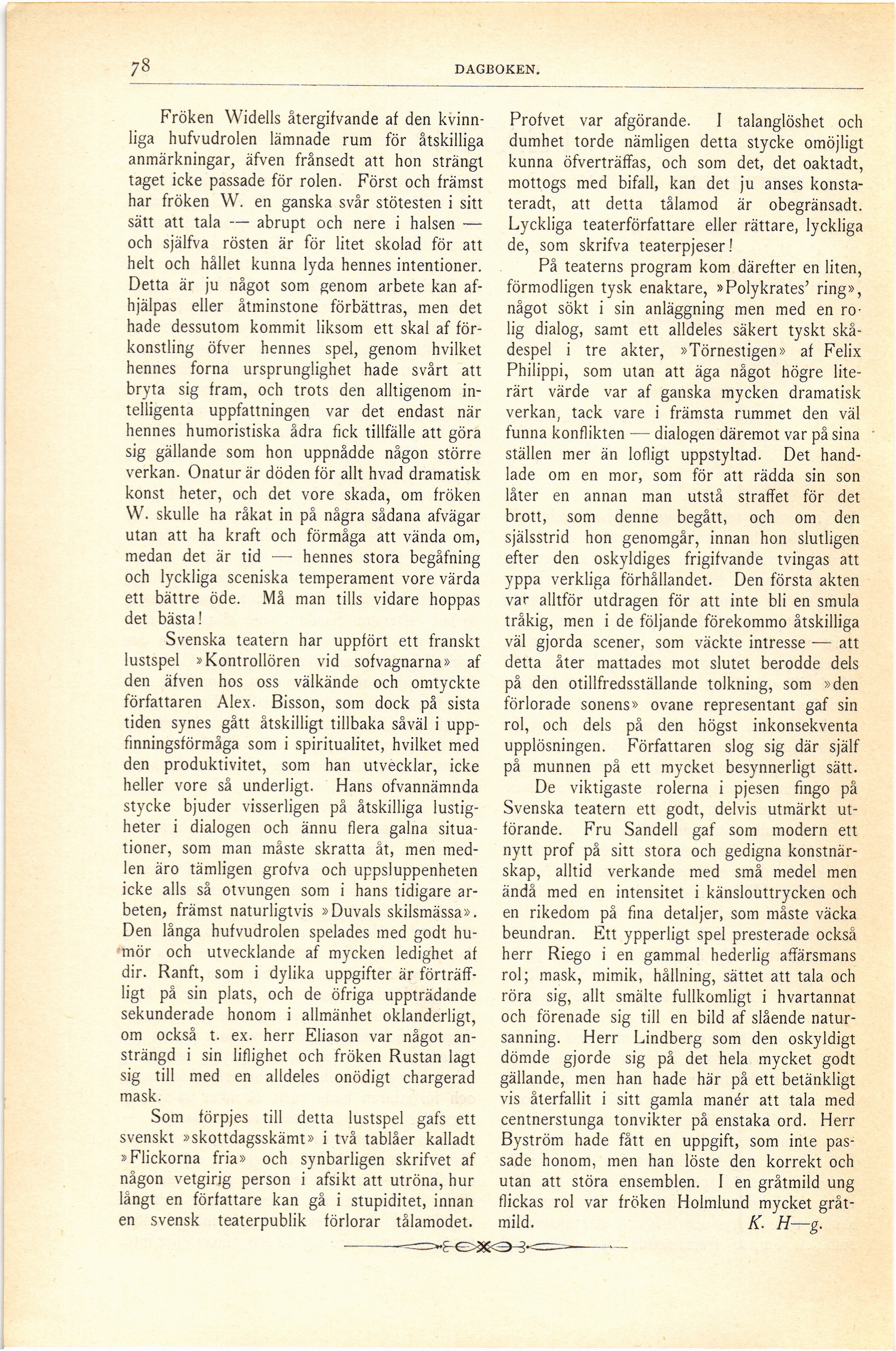 Full resolution (JPEG) - On this page / på denna sida - Dagboken. Bilaga till Ord och Bild - N:r 10, Nov. - Teater. Stockholms teatrar. Af K. H—g
