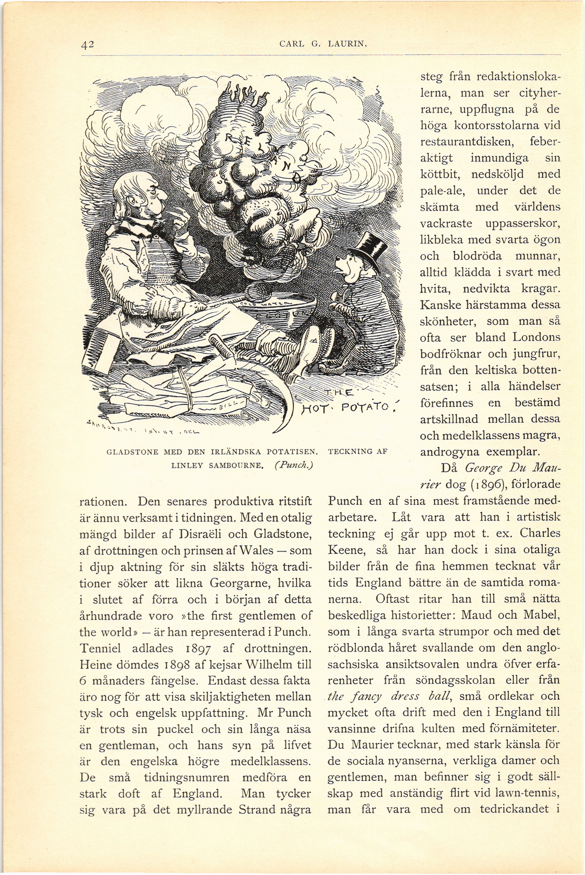 GLADSTONE MED DEN IRLÄNDSKA POTATISEN. TECKNING AF