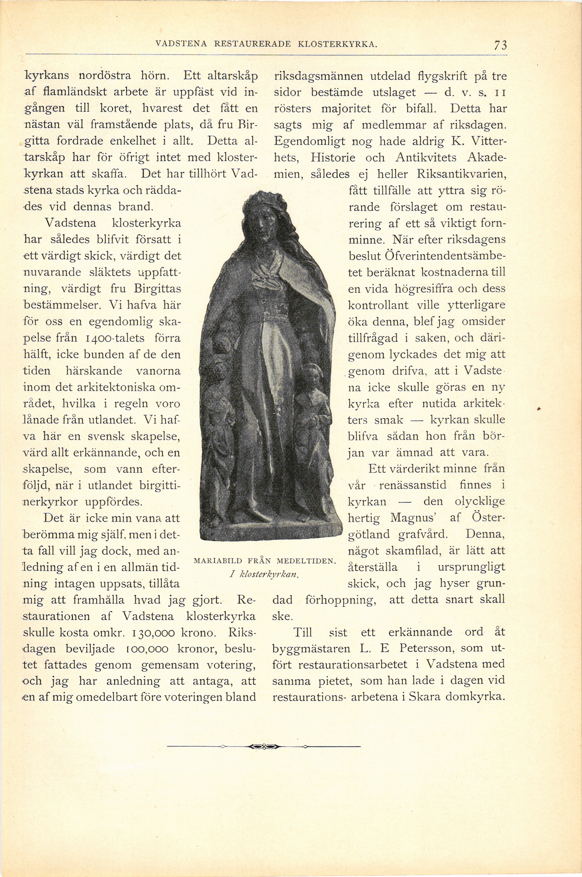 Full resolution (JPEG) - On this page / på denna sida - Andra häftet - Vadstena restaurerade klosterkyrka. Af Hans Hildebrand. Med 6 bilder