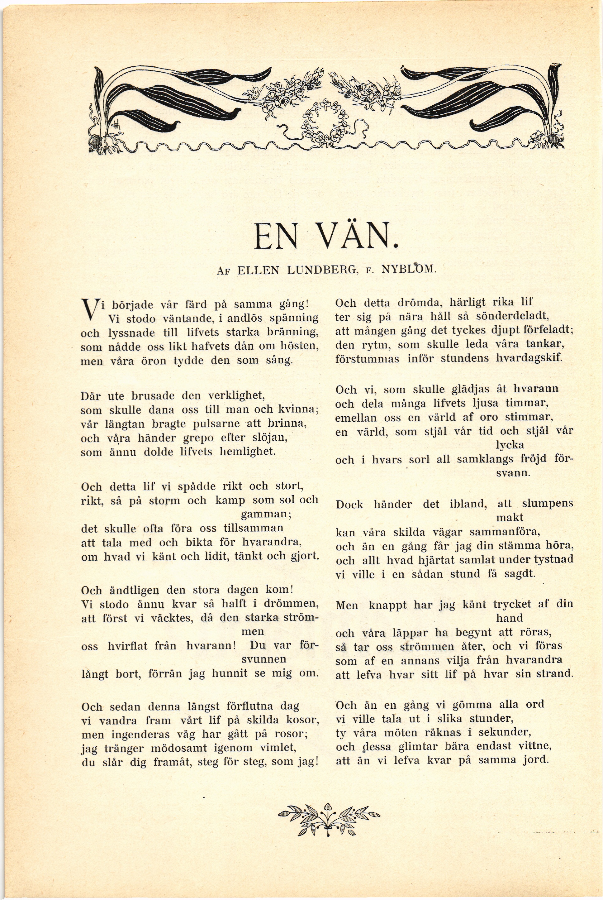 Full resolution (JPEG) - On this page / på denna sida - Andra häftet - En vän. Af Ellen Lundberg, f. Nyblom